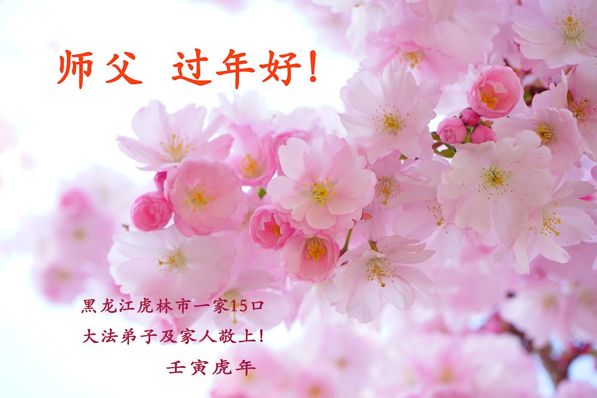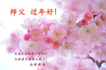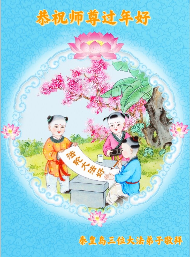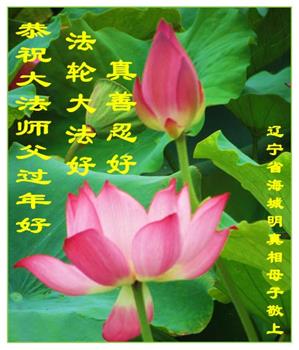 弟子及全家不修炼的常人妻子、儿子、儿媳、孙子见到大法弟子的修炼状态,都认同大法,平时也按照真、善、忍的法理做事,都已经三退,远离邪恶。全家跪拜师父虎年过年好!