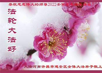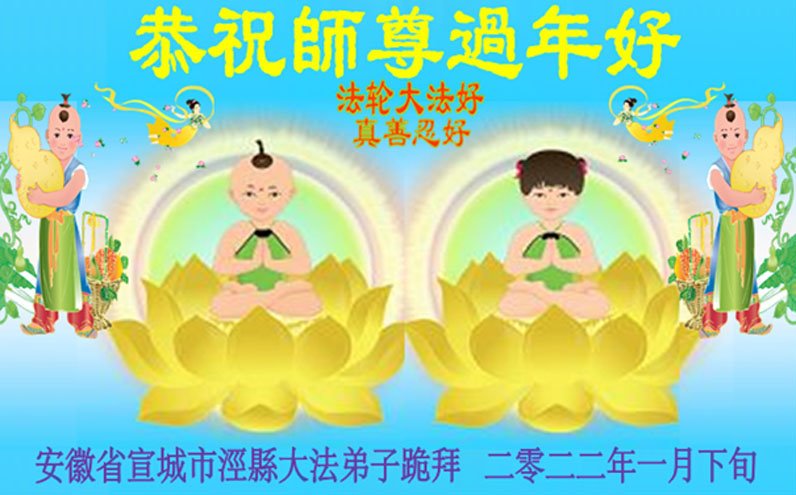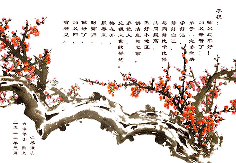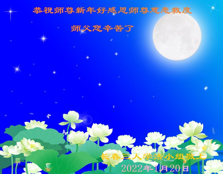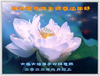 江苏省明真相的世人在二零二二年新年之际感谢大法师父为世界带来光明!为人类带来福祉!为大地送来春暖!为晴空加上彩云!为黑夜升起明灯!为社会营造正气与祥和!当我们了解到法轮功的真实意义后,满怀对您的无比崇敬和深深的感谢!
