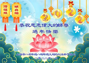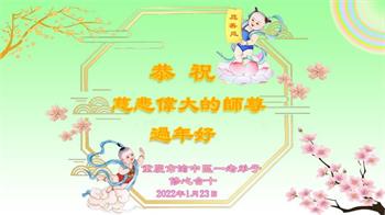 【明慧网二零二二年一月二十九日】(明慧记者章韵报道)自法轮大法弘传于世,三十年过去了,法轮大法的美好、坚忍和慈悲感动了世人,使他们身心受益。在师尊救度苍宇、法正洪穹的伟大正法中,新的一年到来了。值此辞旧迎新之际,多伦多大法弟子恭祝师尊过年好!