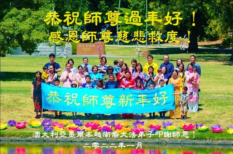 ![]() 图1:二零二二年辛丑岁末,墨尔本越南法轮功学员和家人恭祝师尊过年好。 |