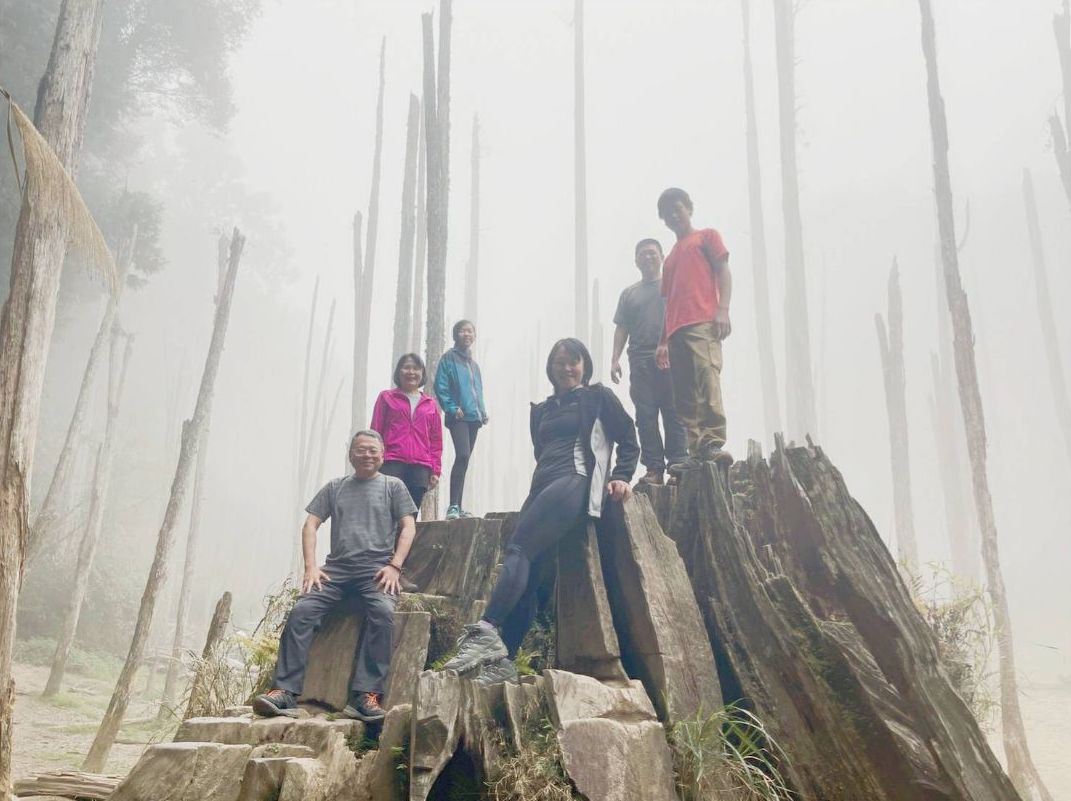 为什么这么说呢?小禧分享他们一家奇特的经历。她说,“连假期间侄儿邀约到杉林溪山群附近的忘忧森林爬山,一行六人到达目的地之后时间还早,还有时间可再爬一座山头。攀抵山头回程时山区飘起了浓雾,来时美丽的山林景致成了茫茫昏暗一片,且前方山径常有标示不明的岔路,一时间大伙失去了方向。”