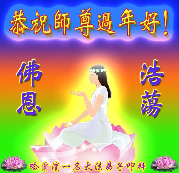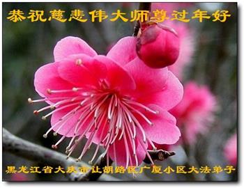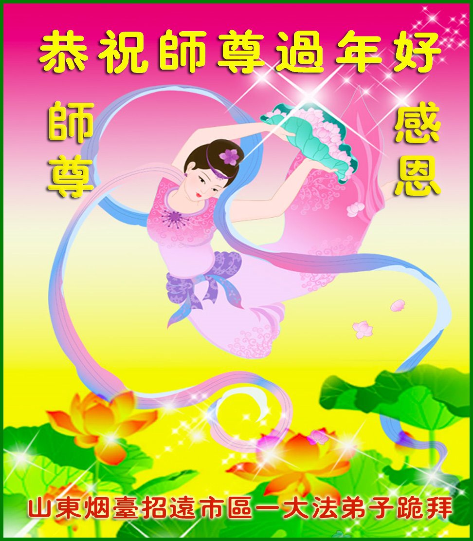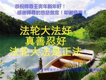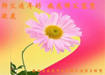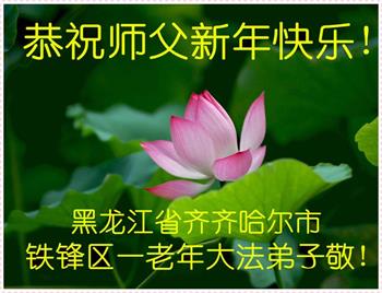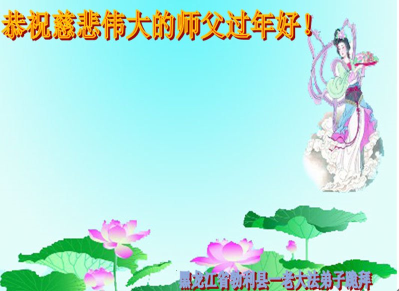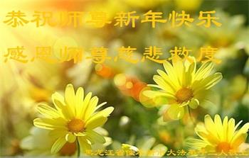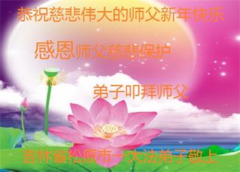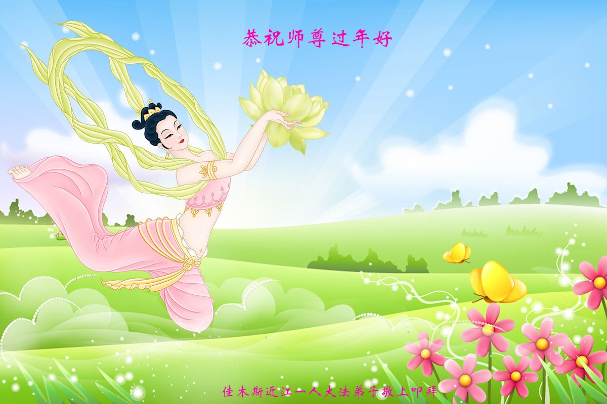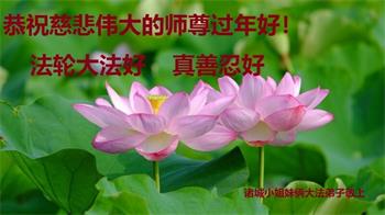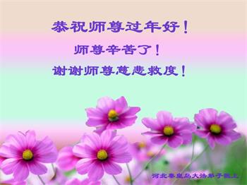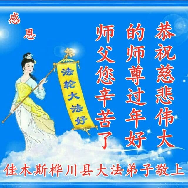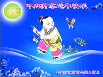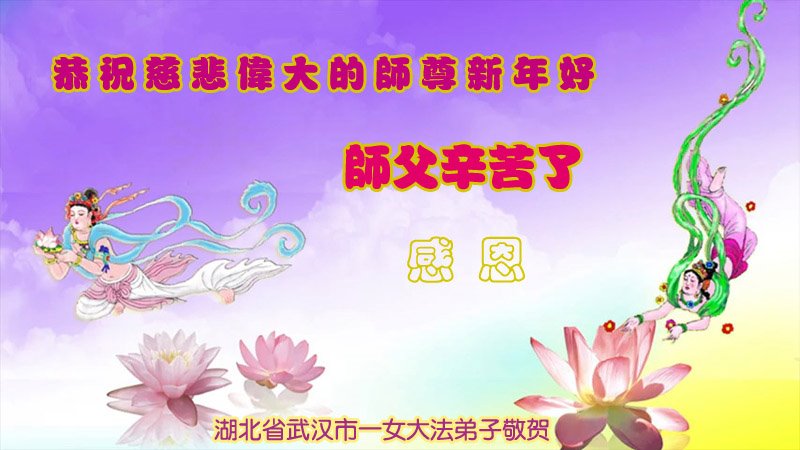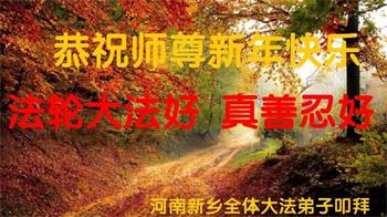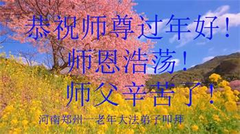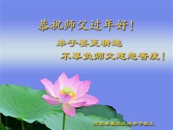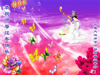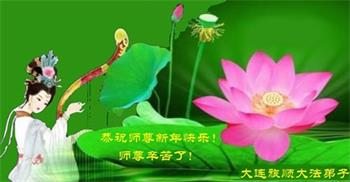 我是得法两年的大法弟子,在这里弟子给师父拜年了!在这得法修炼的两年多时间里,师父您给弟子净化了身体,净化了心灵,让我感觉到了法轮在给弟子净化身体时的变化,感受到了大法的神奇和玄妙,弟子在修炼的路上还需要精進再精進!