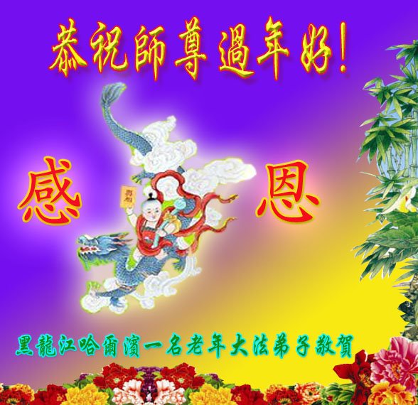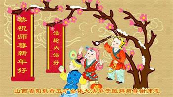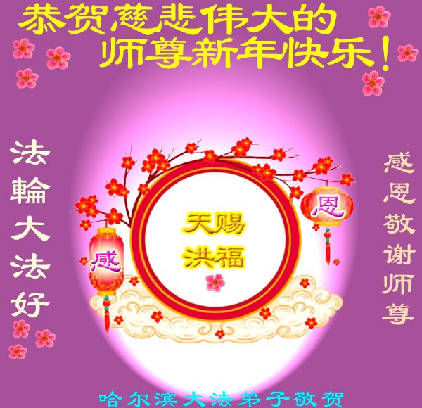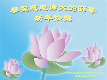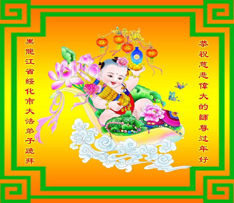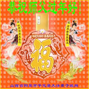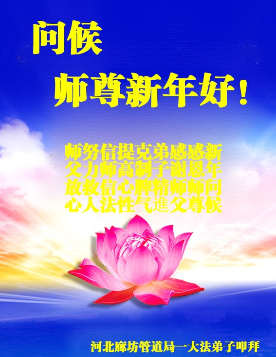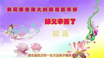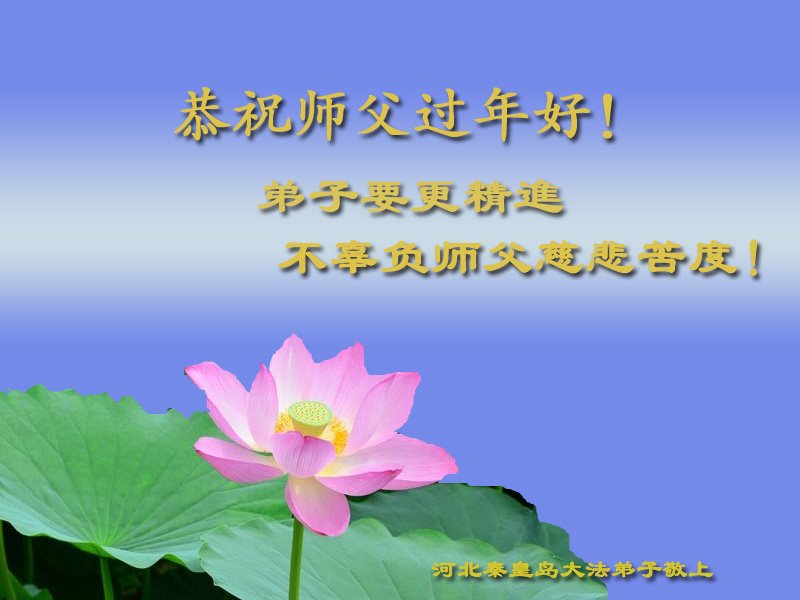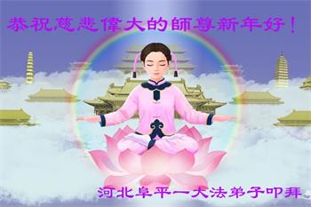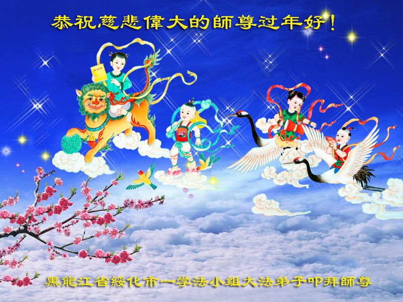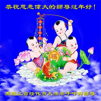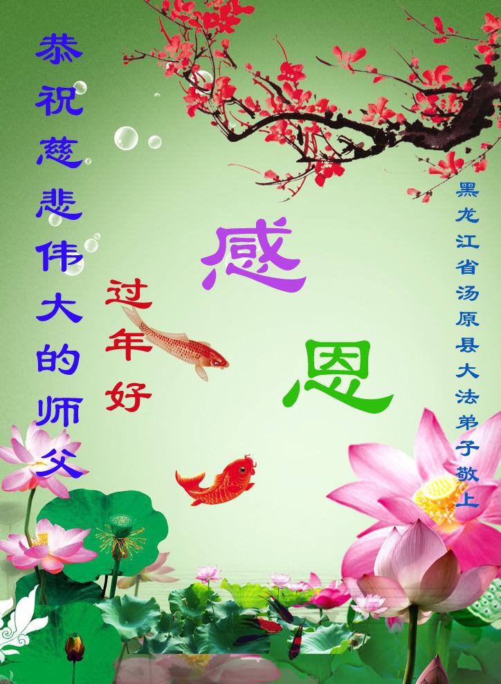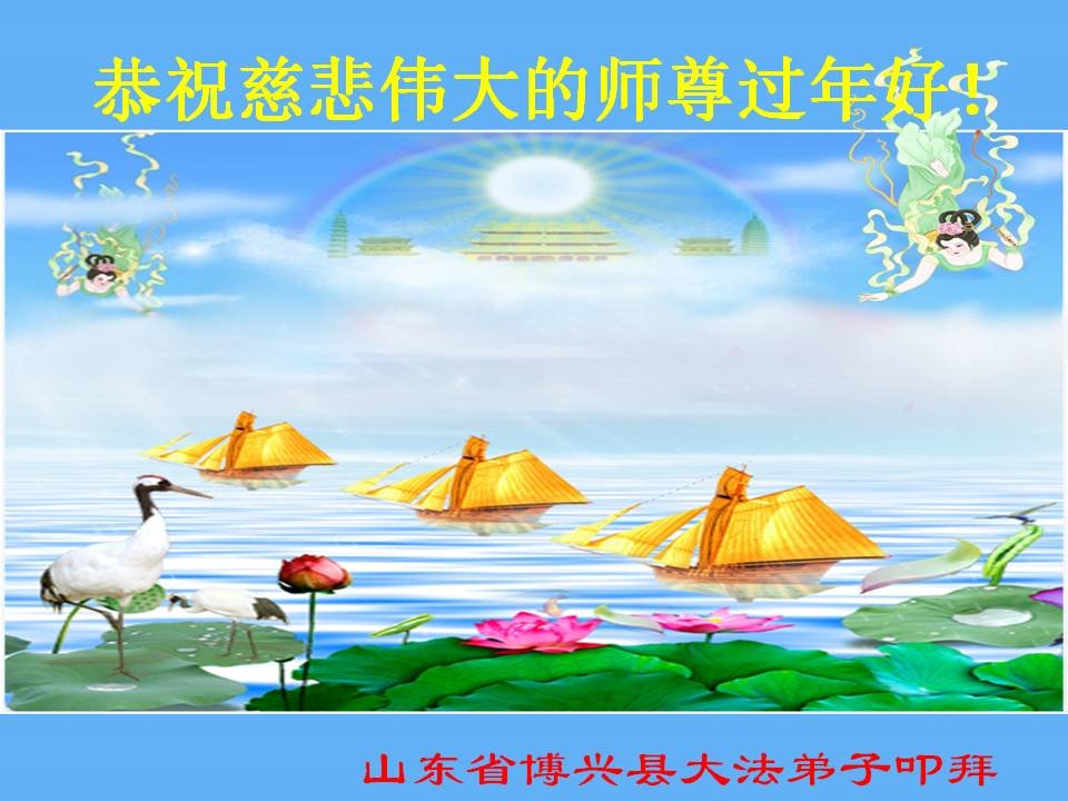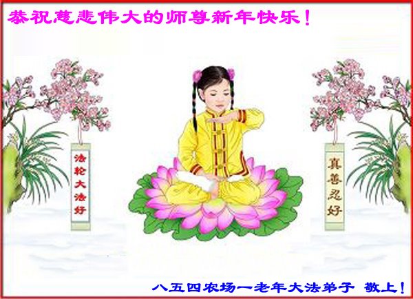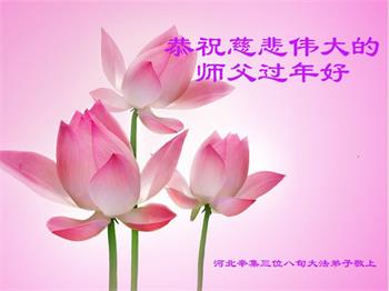 我是得法两年的大法弟子,在这里弟子给师父拜年了!在这得法修炼的两年多时间里,师父您给弟子净化了身体,净化了心灵,让我感觉到了法轮在给弟子净化身体时的变化,感受到了大法的神奇和玄妙,弟子在修炼的路上还需要精進再精進!
