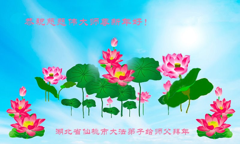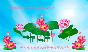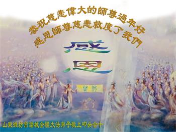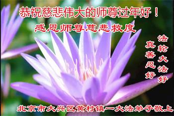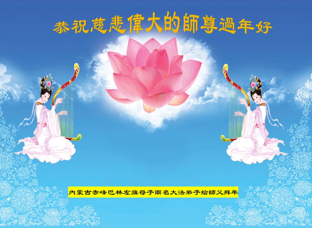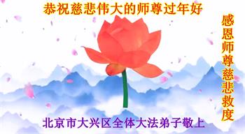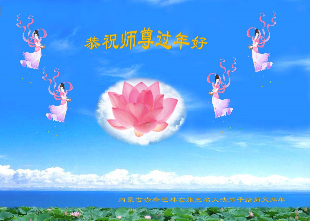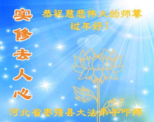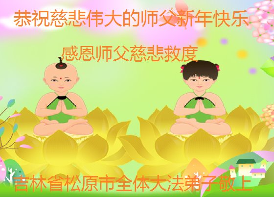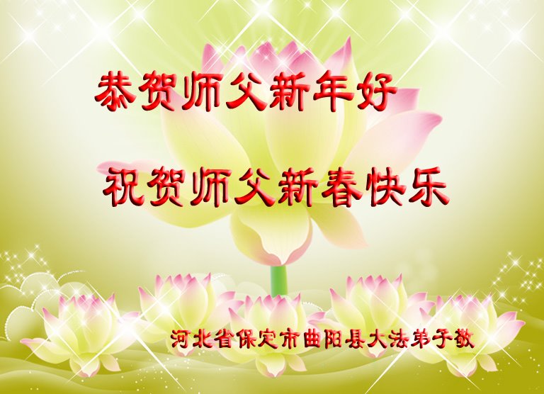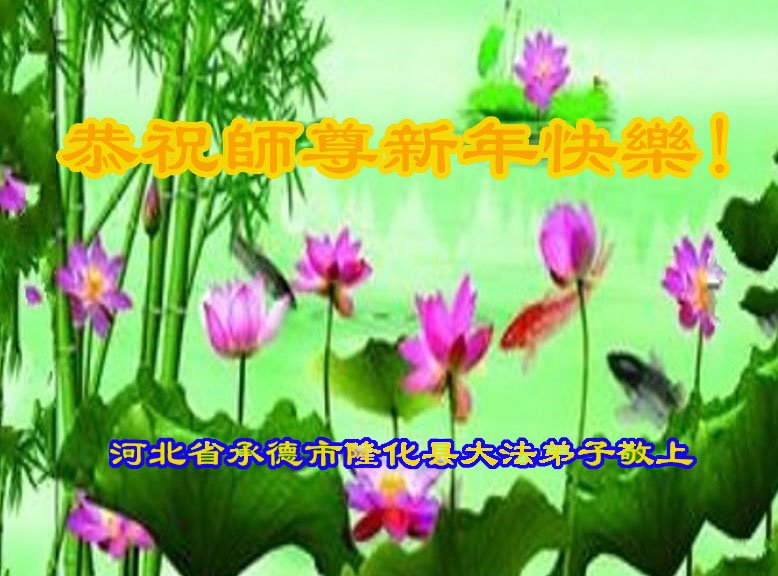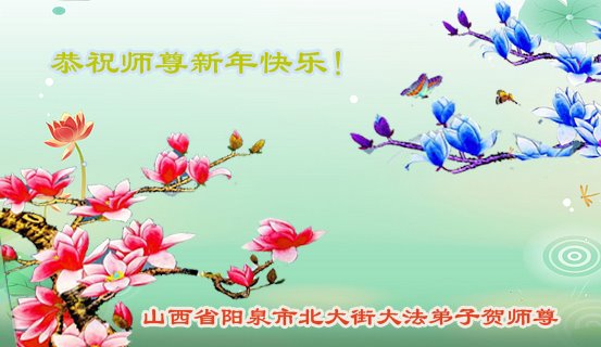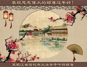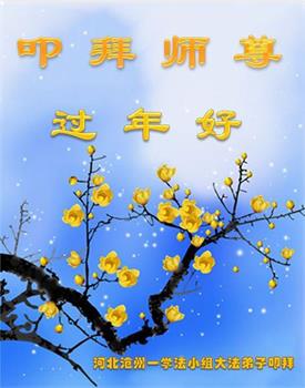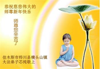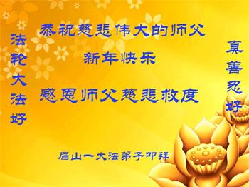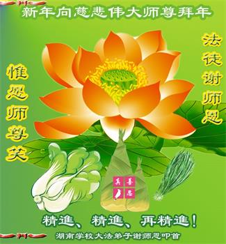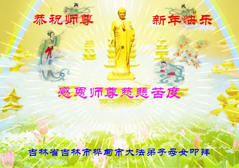 我是得法两年的大法弟子,在这里弟子给师父拜年了!在这得法修炼的两年多时间里,师父您给弟子净化了身体,净化了心灵,让我感觉到了法轮在给弟子净化身体时的变化,感受到了大法的神奇和玄妙,弟子在修炼的路上还需要精進再精進!