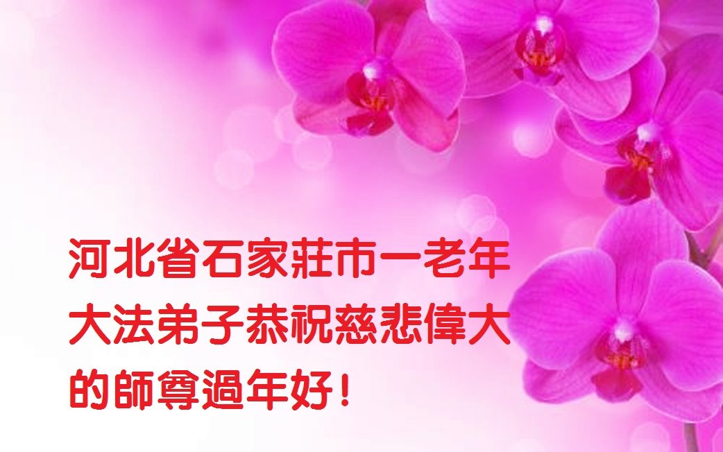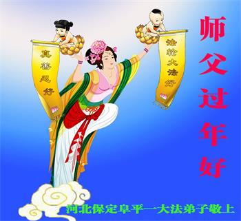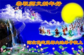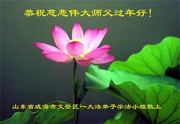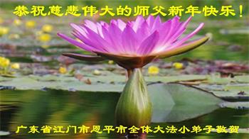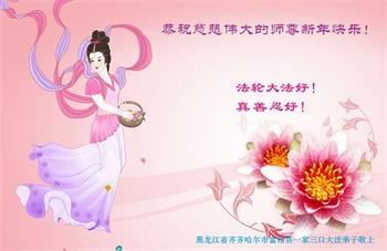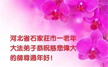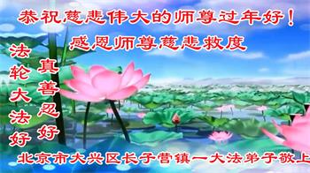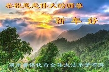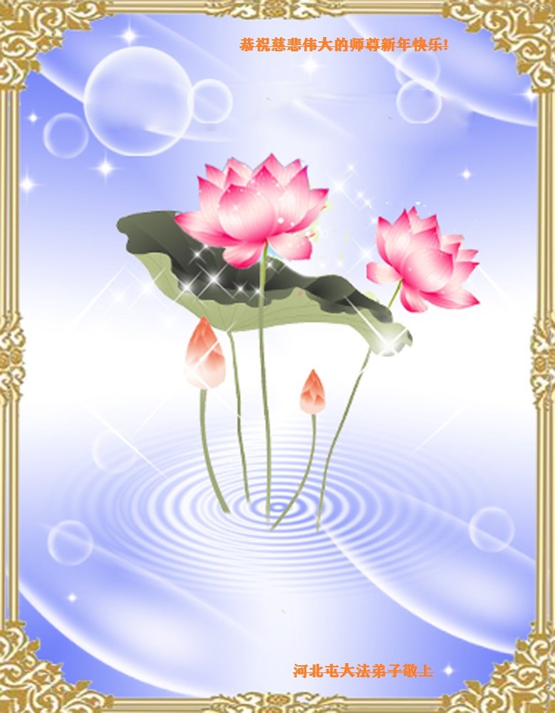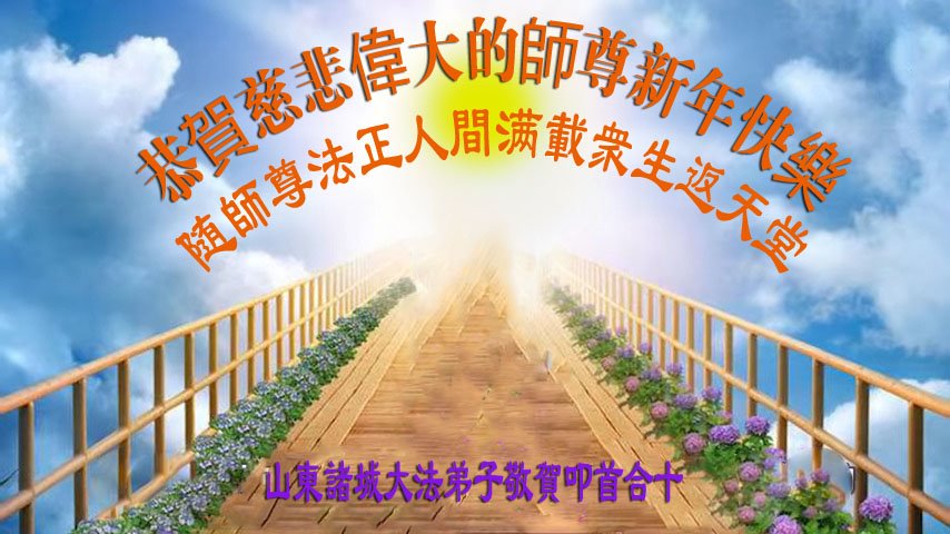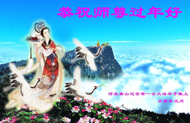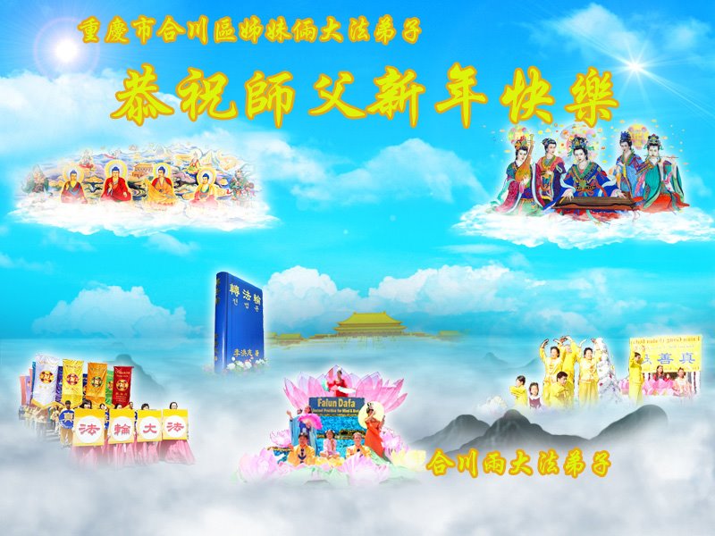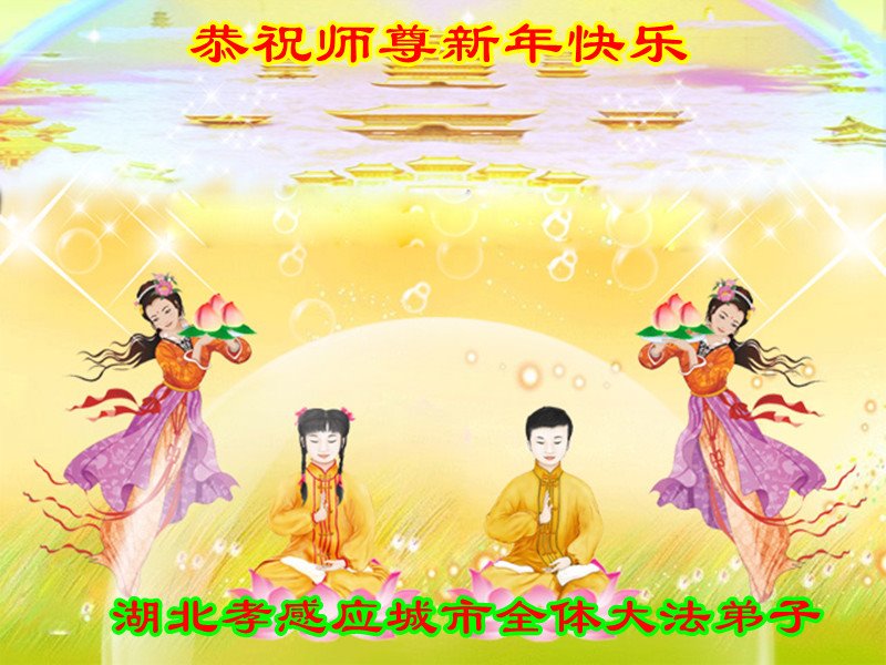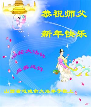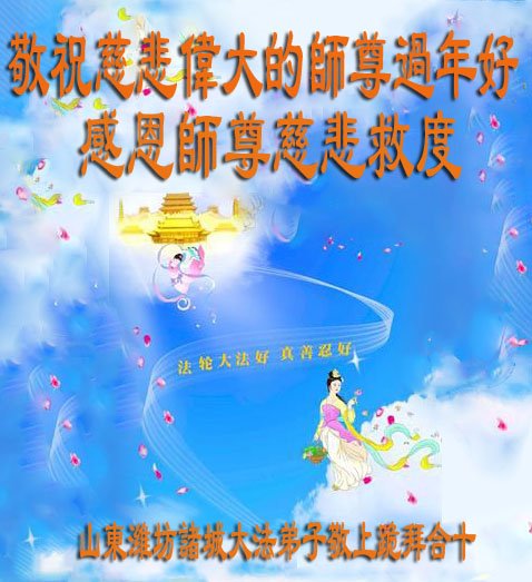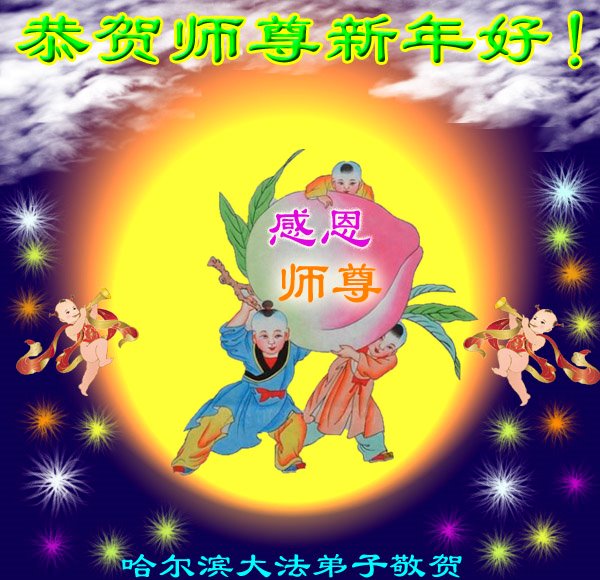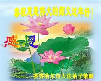 我是得法两年的大法弟子,在这里弟子给师父拜年了!在这得法修炼的两年多时间里,师父您给弟子净化了身体,净化了心灵,让我感觉到了法轮在给弟子净化身体时的变化,感受到了大法的神奇和玄妙,弟子在修炼的路上还需要精進再精進!
