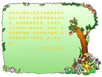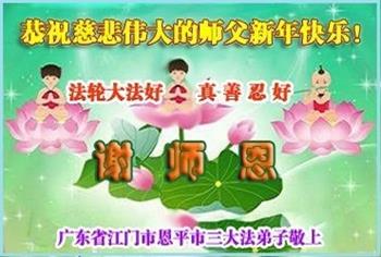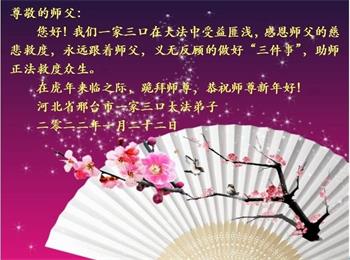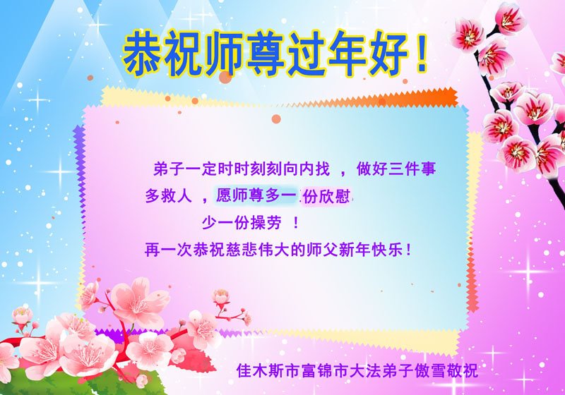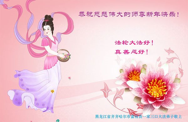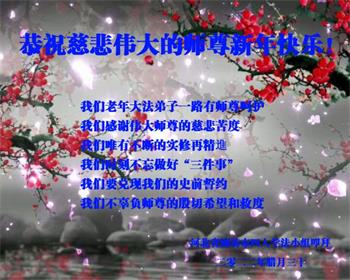 在这新春佳节来临之际,全家人向师尊拜年!祝师尊新年好!祝法轮大法洪传全世界。