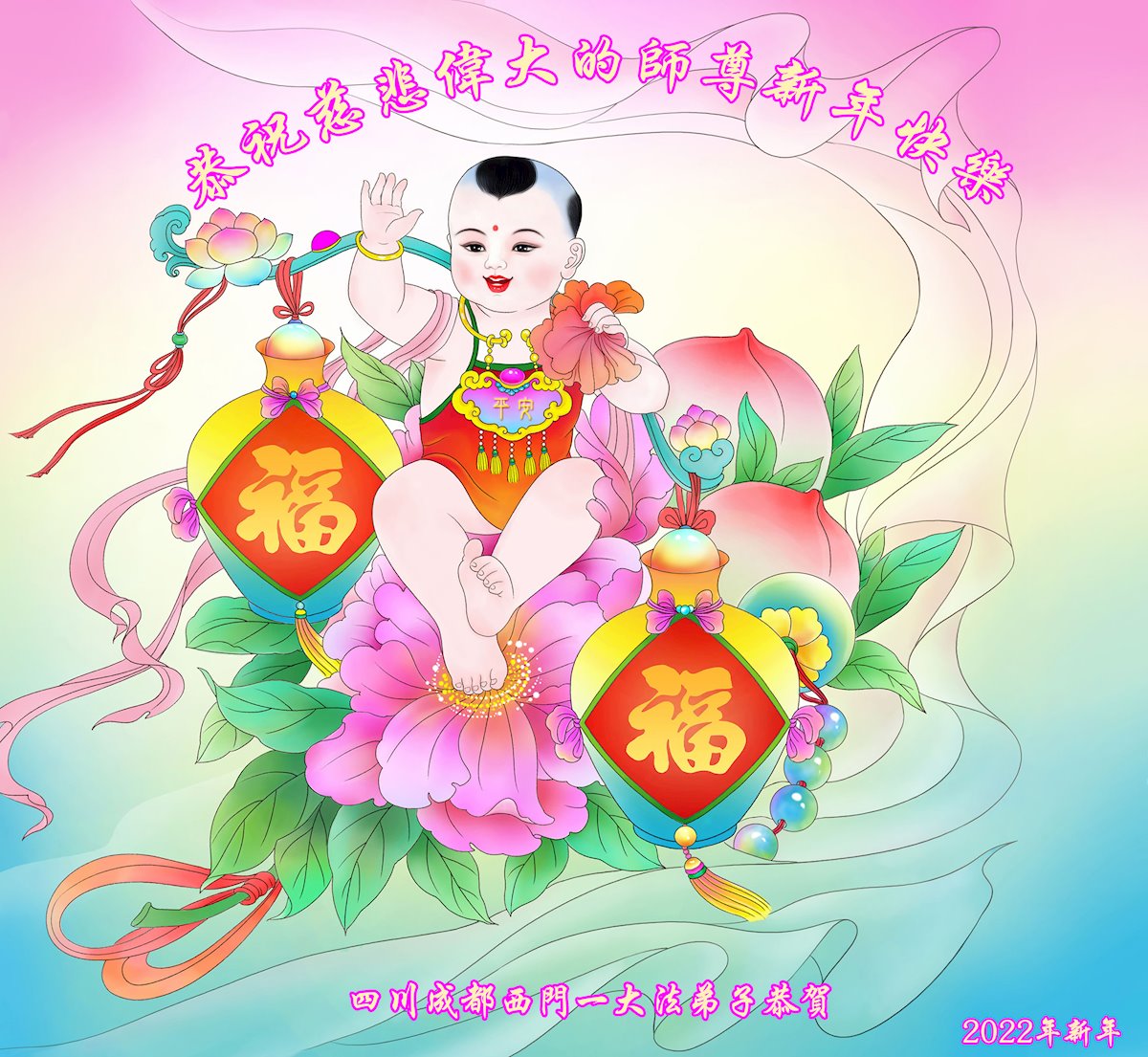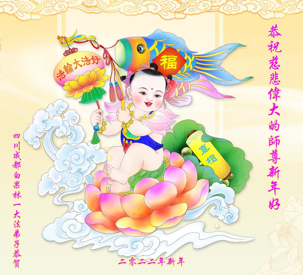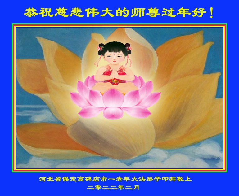 在师尊法正天体已结束,向法正人间过度之际,我们迎来了2022年中国大年。致此,弟子向师尊道一声,师尊您好,您辛苦了!弟子感恩师尊慈悲救度,弟子给师尊拜年,恭祝师尊新年快乐!弟子九叩首!