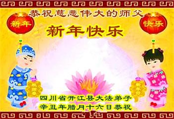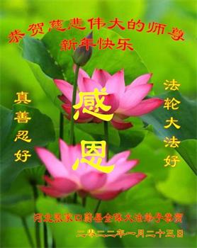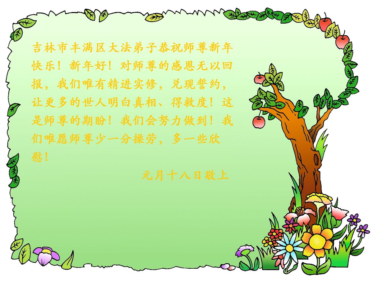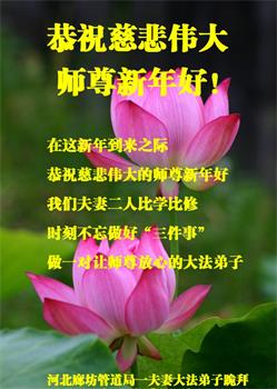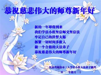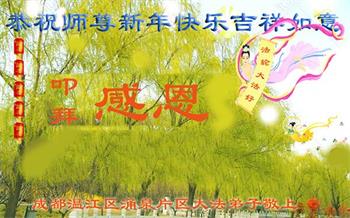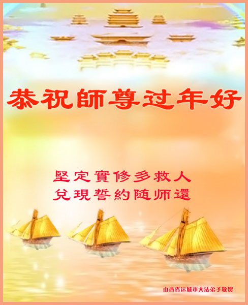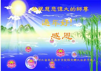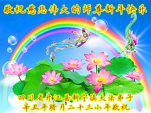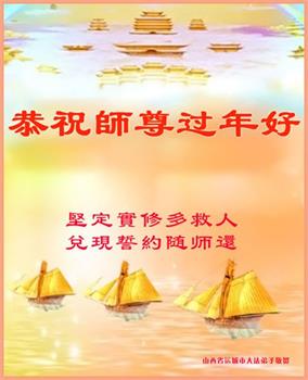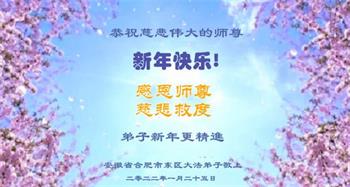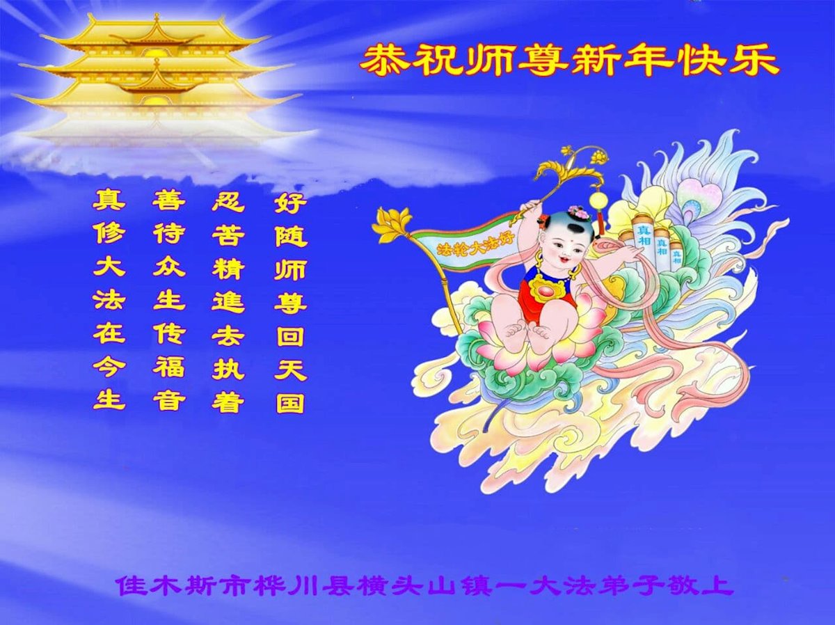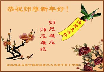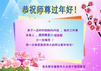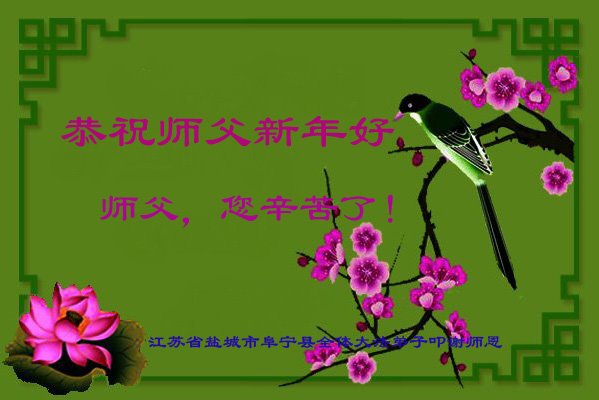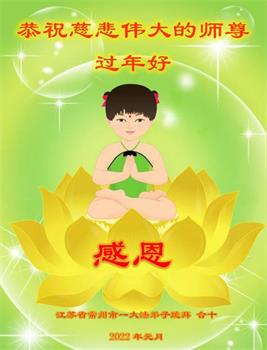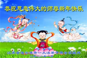 江苏省司法系统大法弟子恭祝师尊新年快乐!他们写道:留给我们救人、修炼的机会越来越少了,弟子一定会珍惜这宝贵的圣缘,精進实修。弟子期盼着与师父相聚的那一天。