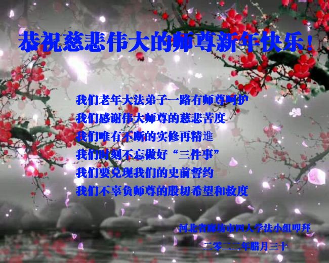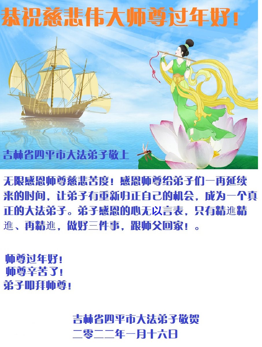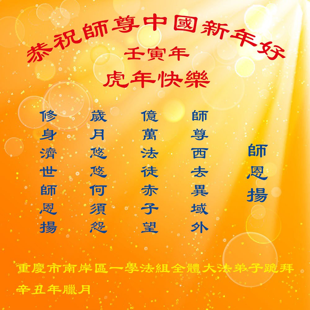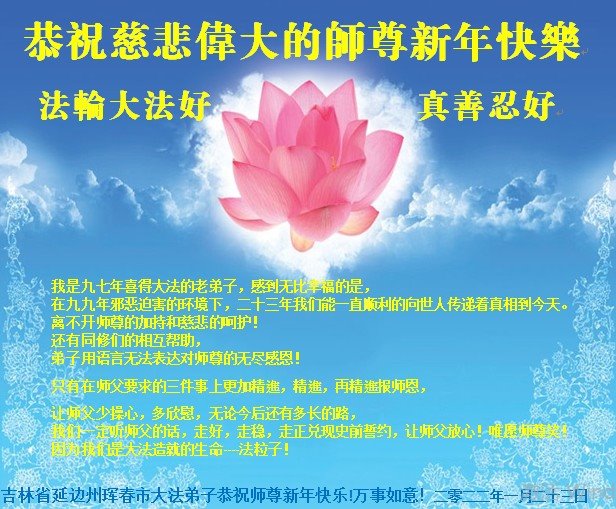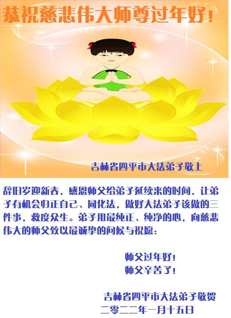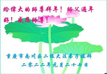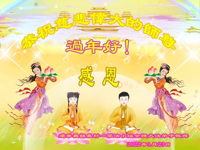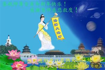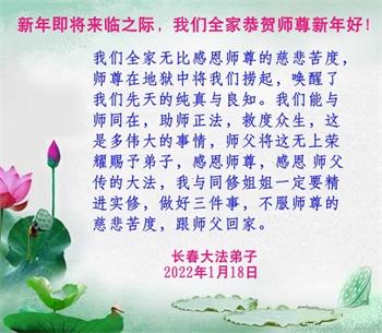 <英文版: http://en.minghui.org/html/articles/2022/1/31/198607.html>中国公检法司、政府机关大法弟子敬拜师尊过年好