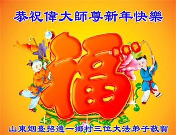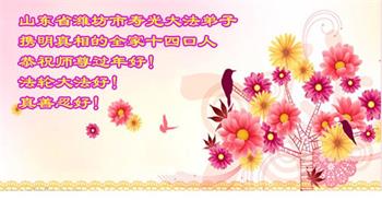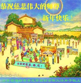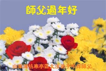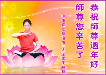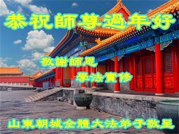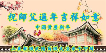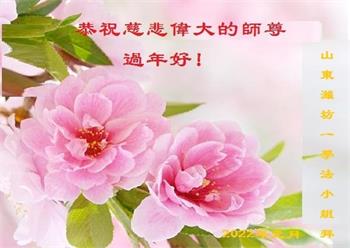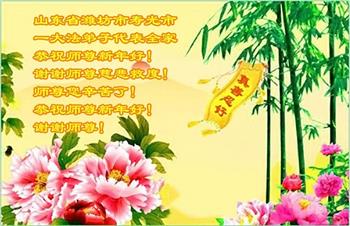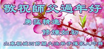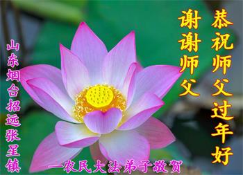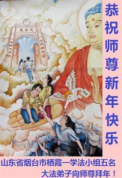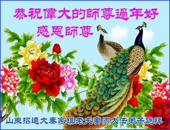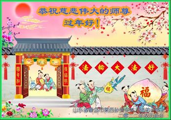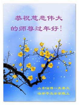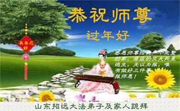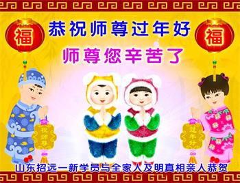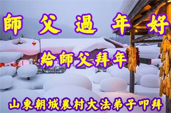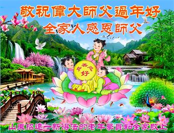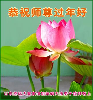 山东招远一新学员与全家人及明真相亲人恭祝师尊过年好!