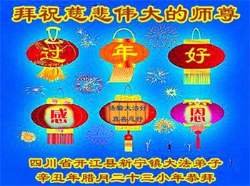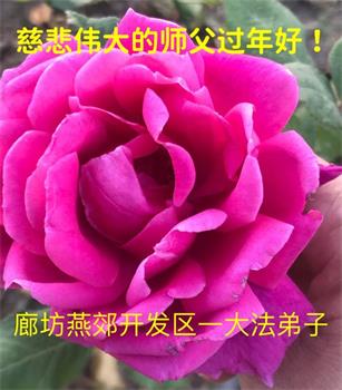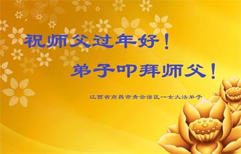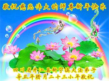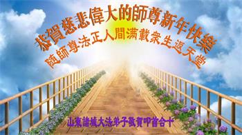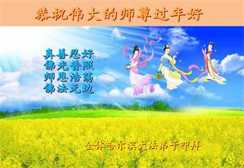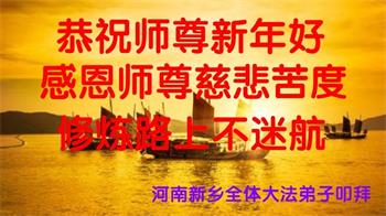 师父您好!新年来临之际,祝师父新年快乐!我愿与所有的大法弟子一起,坚守真善忍的信仰,听师父的话,无愧于正法时期大法弟子的神圣称号。