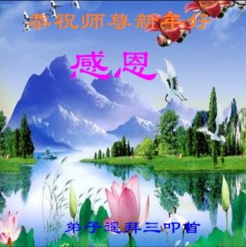 感谢师尊在大法承受铺天盖地的诽谤与打压时,默默为众生承受着一切;感谢师尊用巨大付出延续来的宝贵时间,师尊您辛苦了!弟子必将勇猛精進,不负师恩。众大法弟子必捍卫大法的威严,与师与法同在,做好三件事,兑现誓约,完成使命,请师尊放心!愿众生能够得救,愿众生能明白您的苦心,愿“法轮大法好、真善忍好”传遍世间的每一个角落!