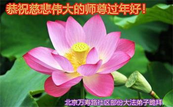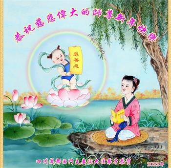 一位得法修炼一年多的青年弟子在贺词中对师父说:“感恩师尊在这十恶毒世中将弟子唤醒,使我从每日的浑浑噩噩,到现在每天的内心充实与美好!我真心为能够得大法而欢喜!”