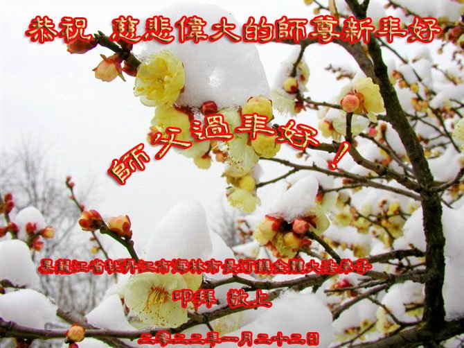 恭祝慈悲伟大的师尊过年好!我们会坚定的跟随师尊走,学好法,成为师尊的好弟子,助师救度众生。能得到师尊的救度我们感到无比荣幸!谢谢师尊的慈悲救度!