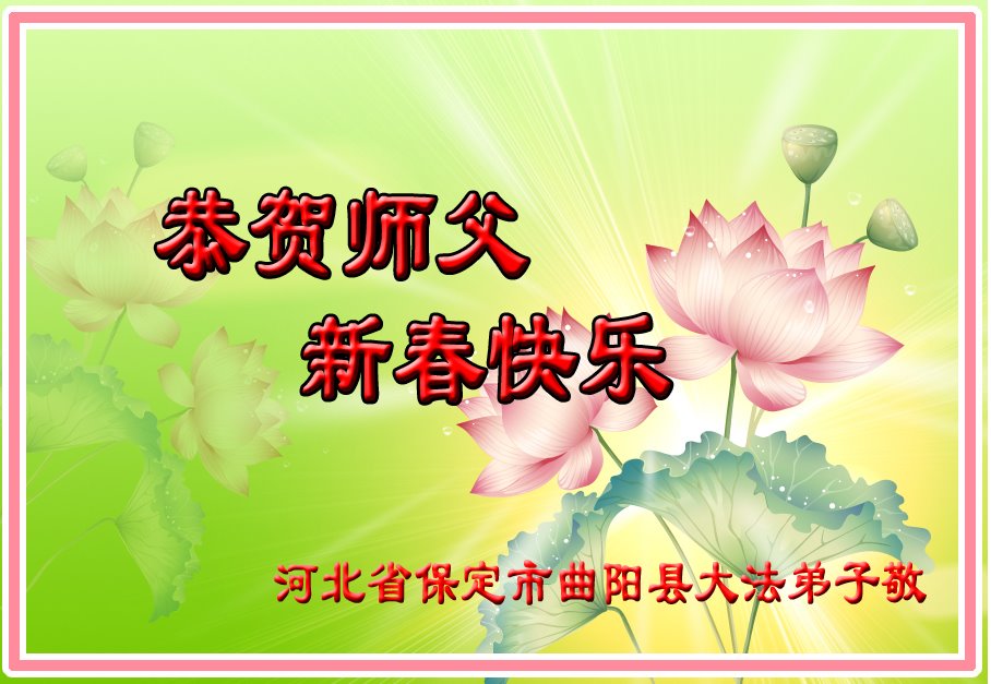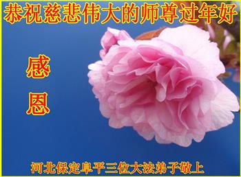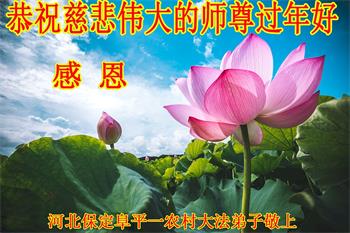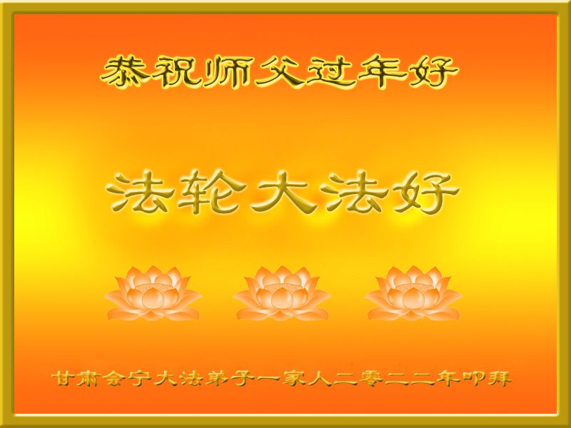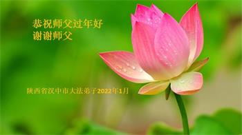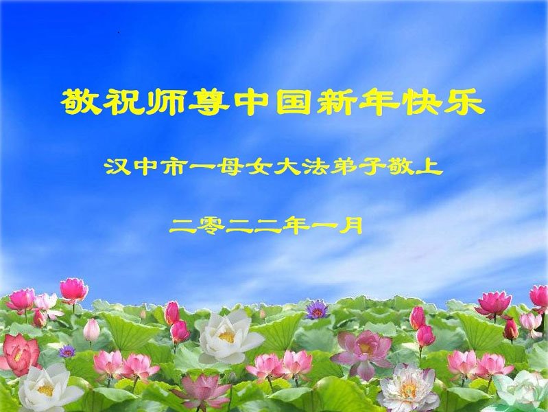 我是陕西省汉中一新学员,身患癌症命悬一线之际有缘得法修炼,身体很快恢复,值此佳节,我和全家叩谢师父救命之恩,恭祝师父过年好!