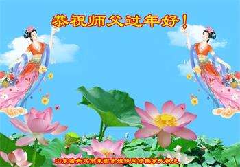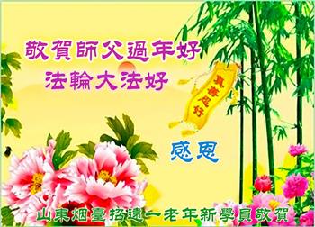 山东烟台招远一新得法的老年学员敬祝师父过年好!