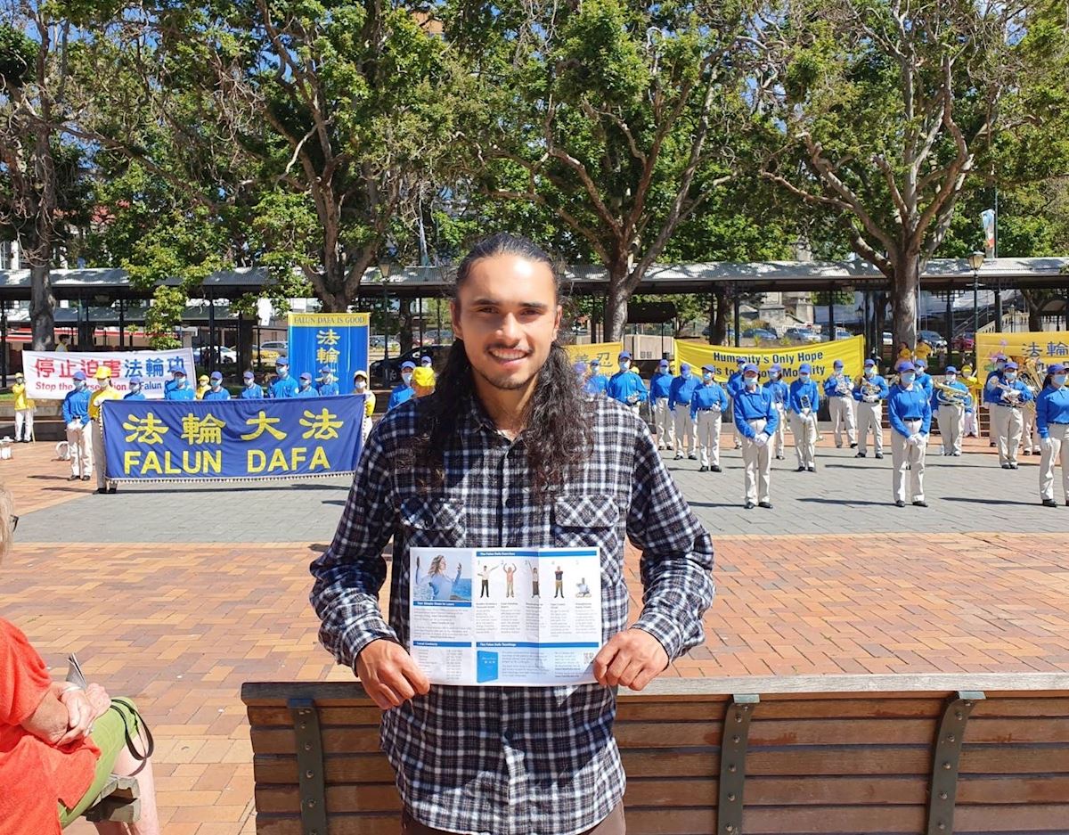帕塔玛·克罗斯曼-尼克松(Poutama Crossman-Nixon)是一位毛利族裔的小伙子。当天,他开车路过学员们炼功的广场,心里就莫名的喜欢,于是停好车,站在一边看了很长时间。