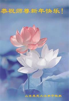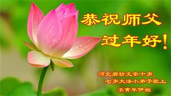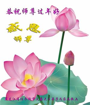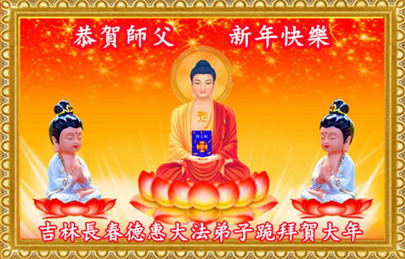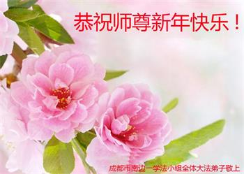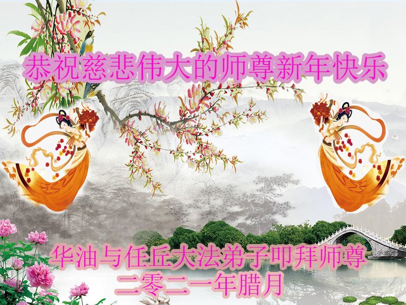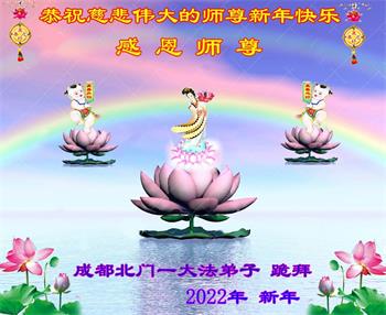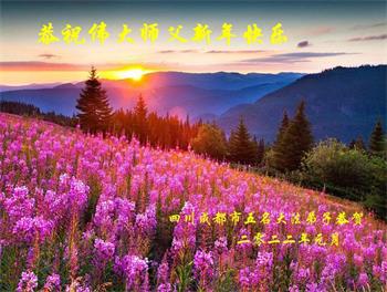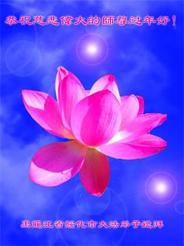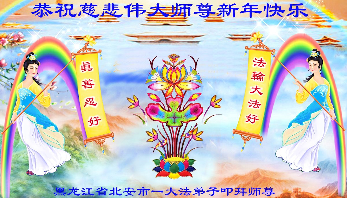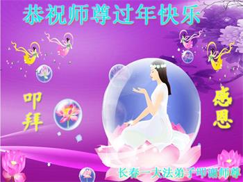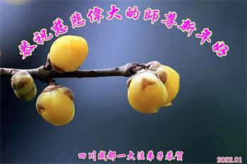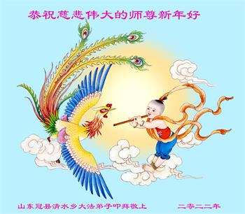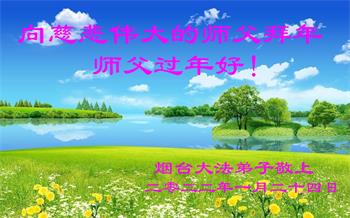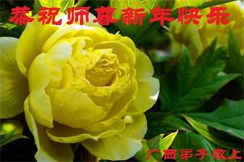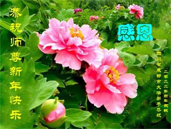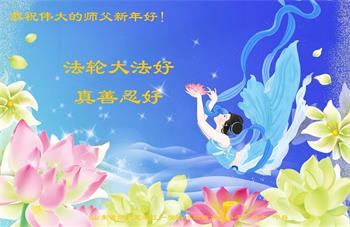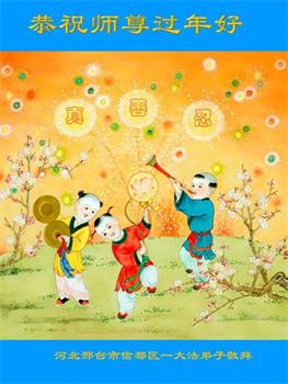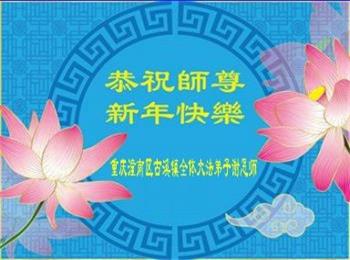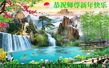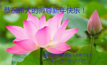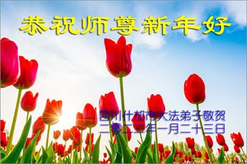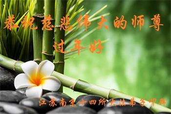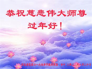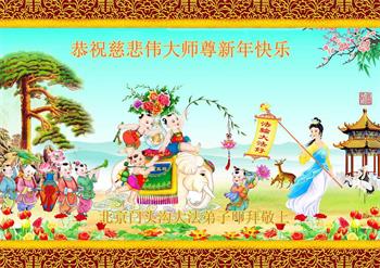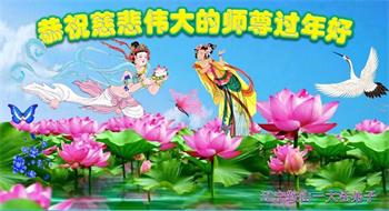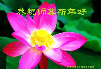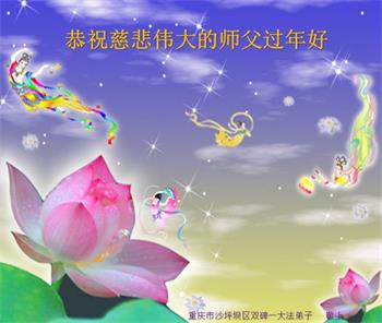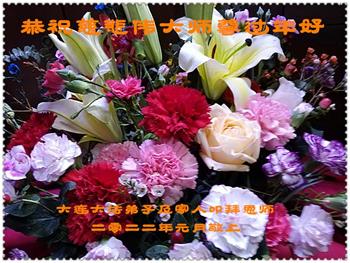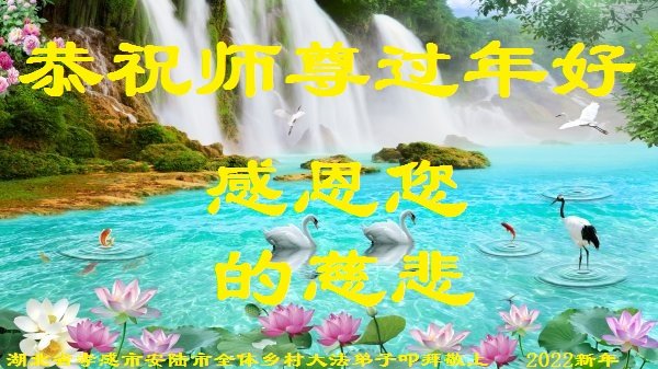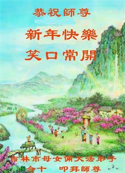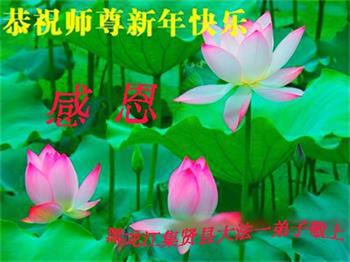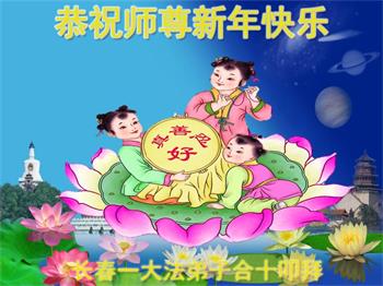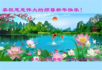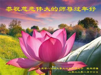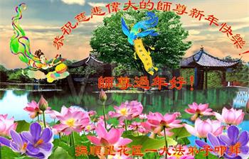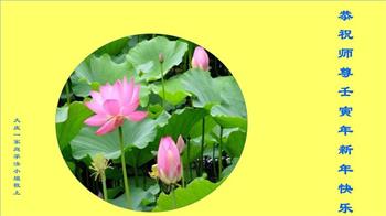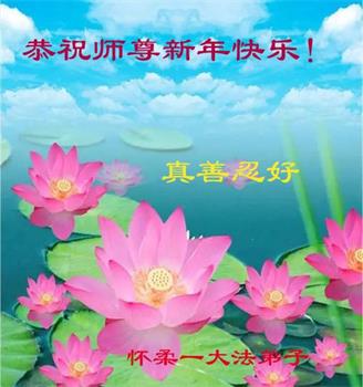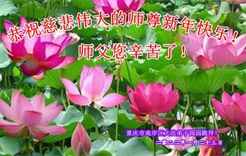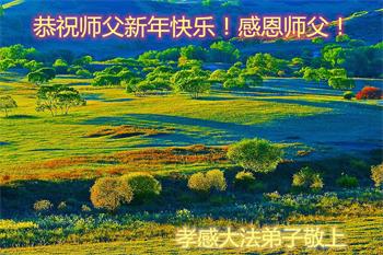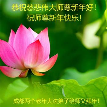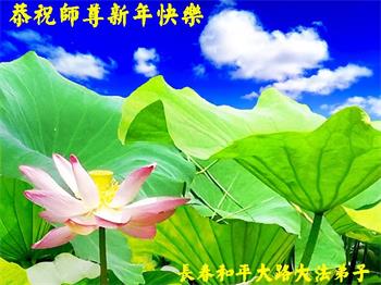 在师尊您的加持和保护下,又進入了新的一年。新的一年里,我们一定会按照师尊您的教诲,做好三件事,学好法,修好自己、多救人。紧跟师尊的正法進程,圆满随师还。
