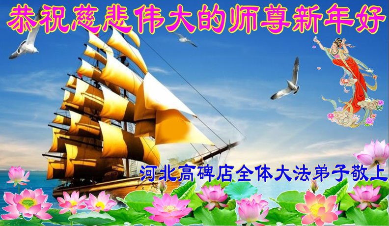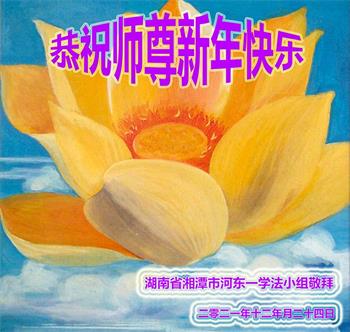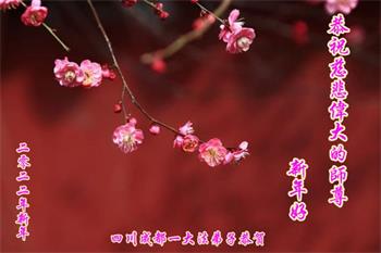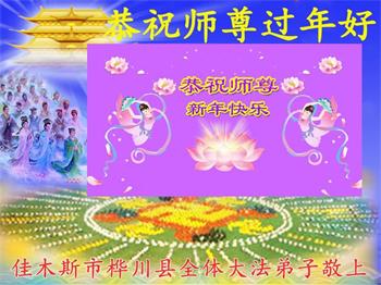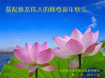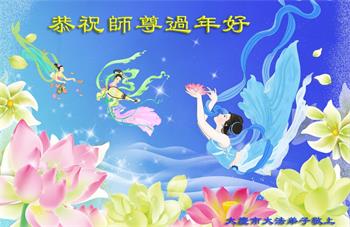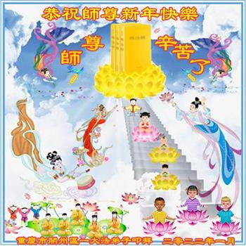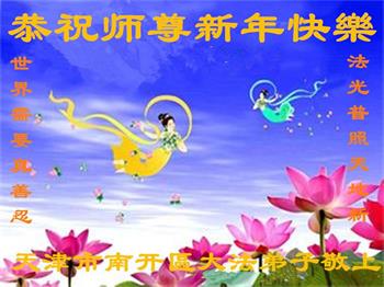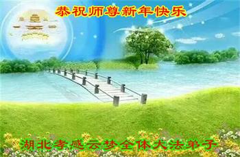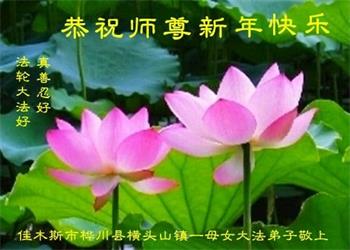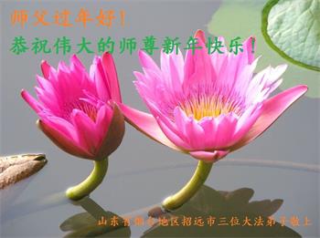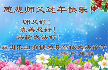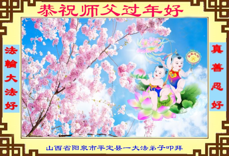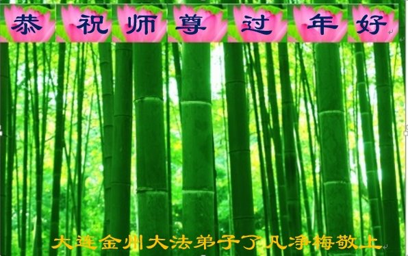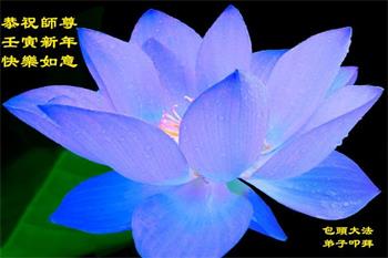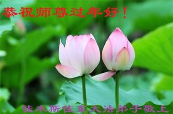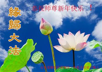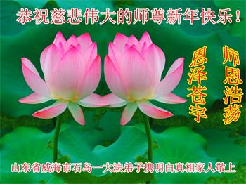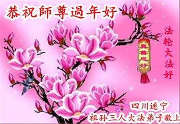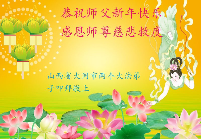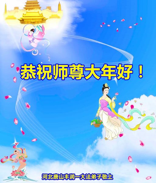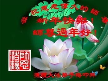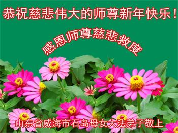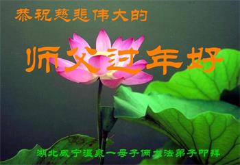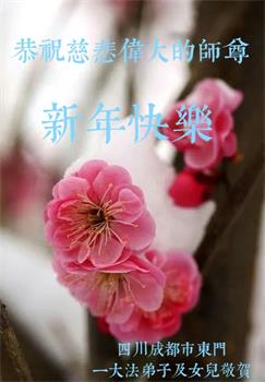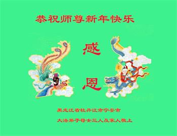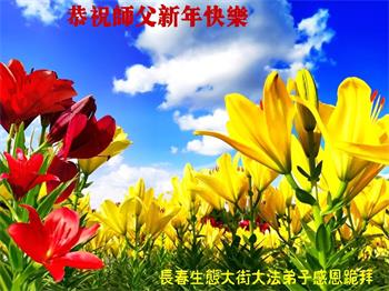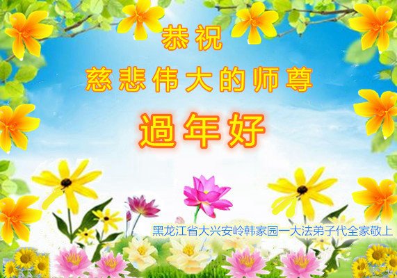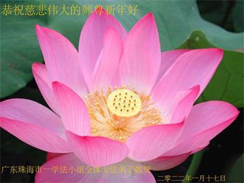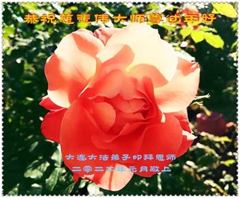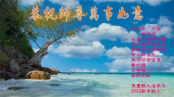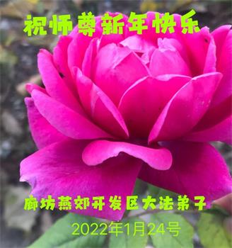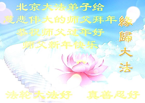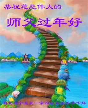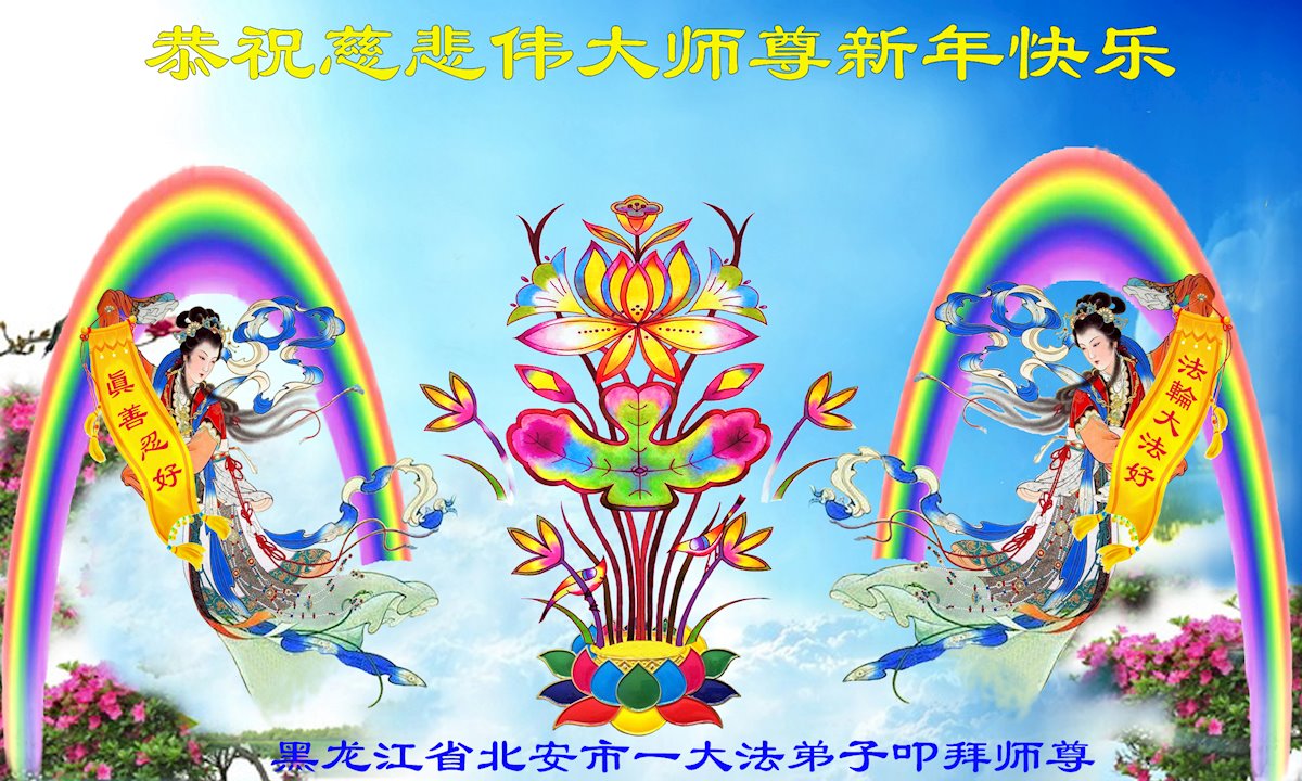 在师尊您的加持和保护下,又進入了新的一年。新的一年里,我们一定会按照师尊您的教诲,做好三件事,学好法,修好自己、多救人。紧跟师尊的正法進程,圆满随师还。