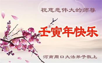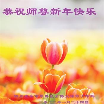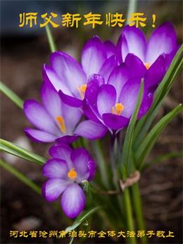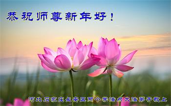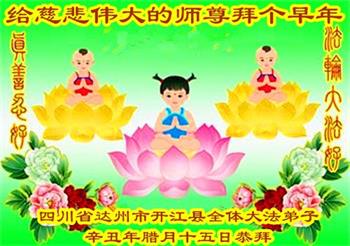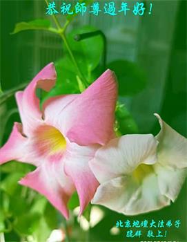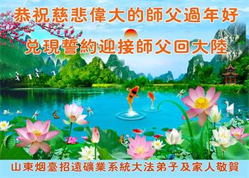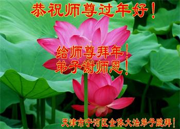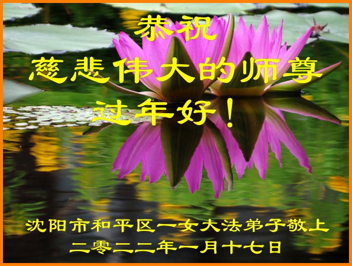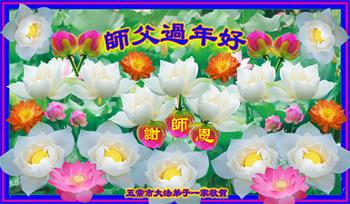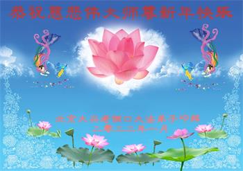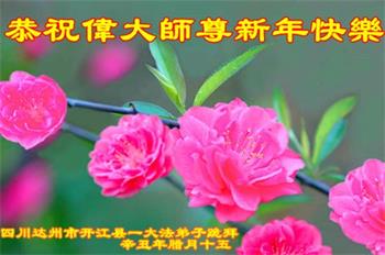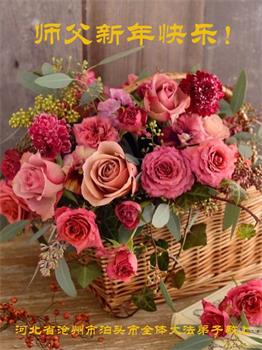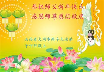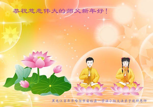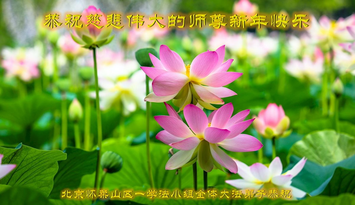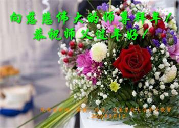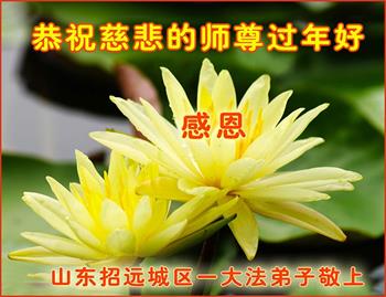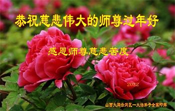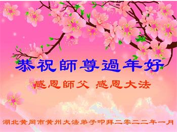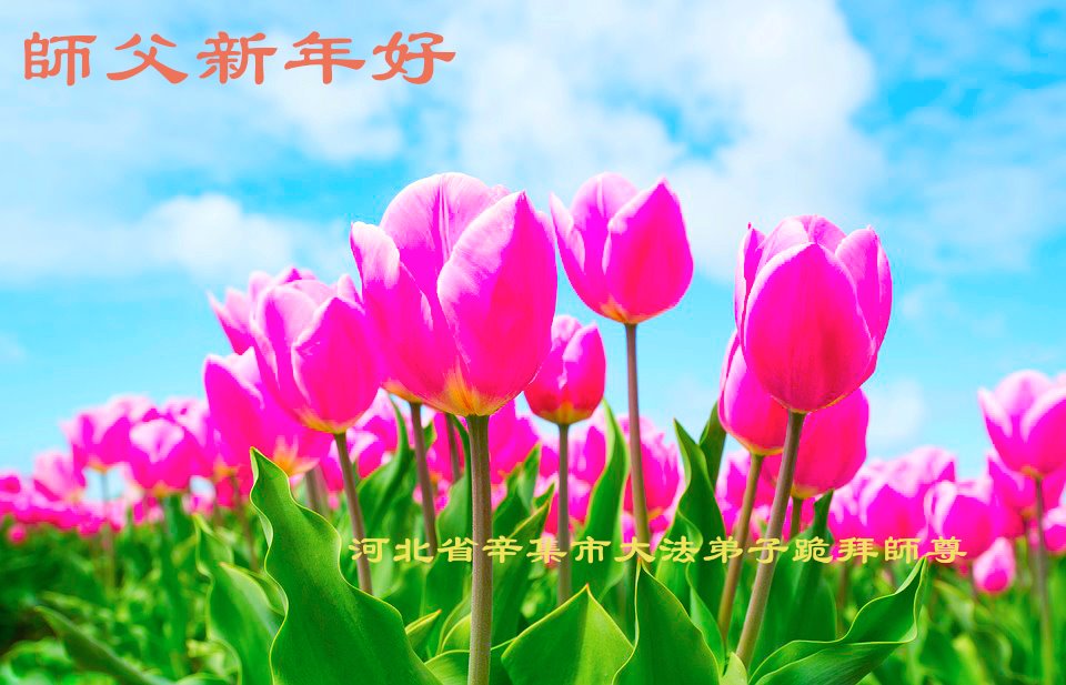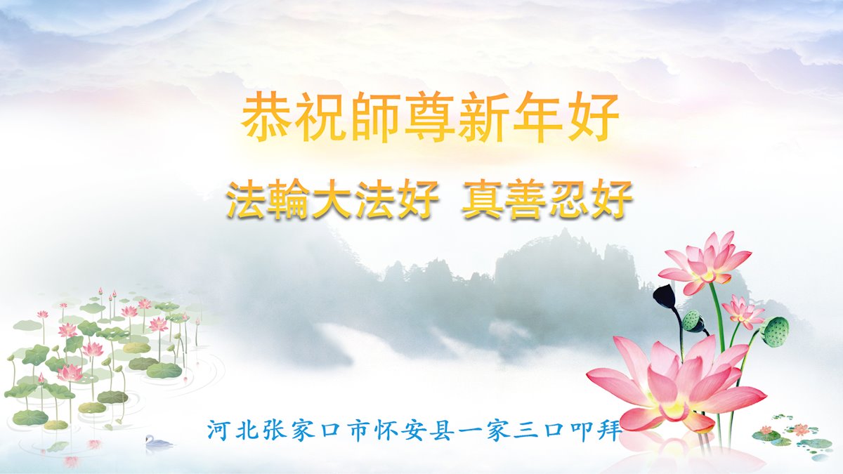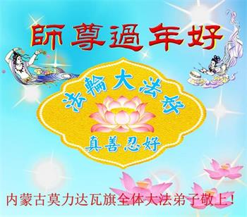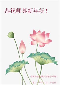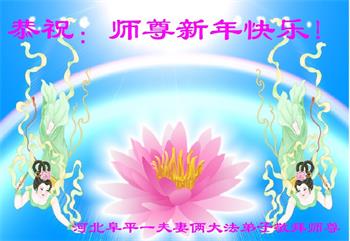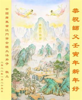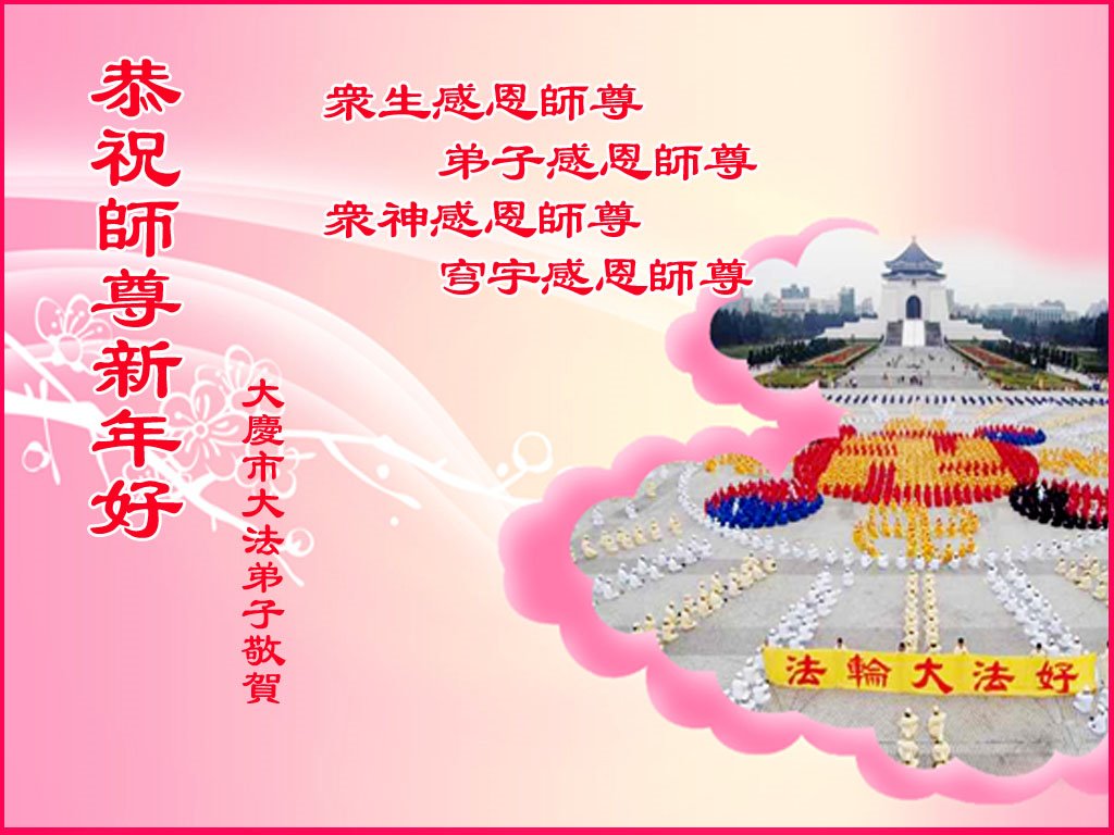 在师尊您的加持和保护下,又進入了新的一年。新的一年里,我们一定会按照师尊您的教诲,做好三件事,学好法,修好自己、多救人。紧跟师尊的正法進程,圆满随师还。