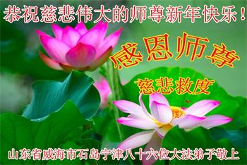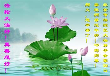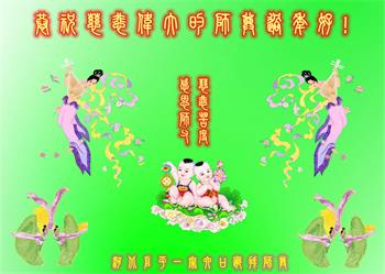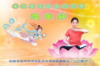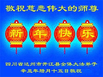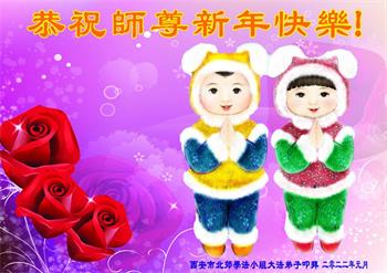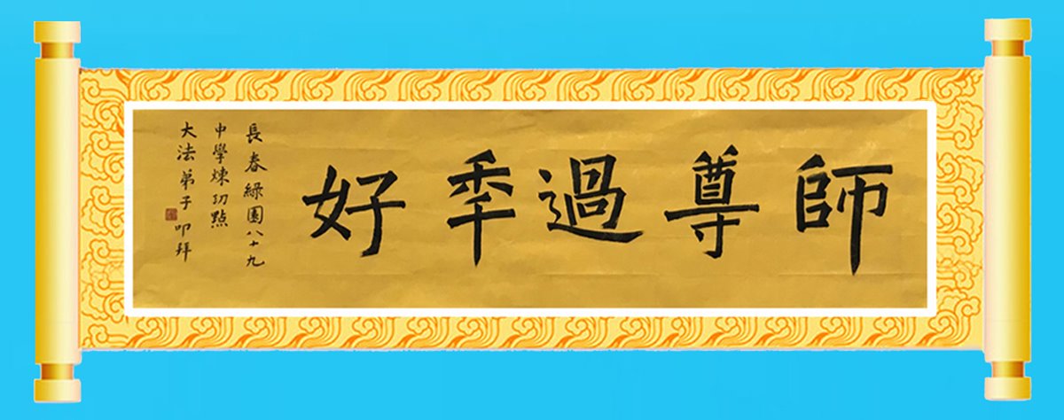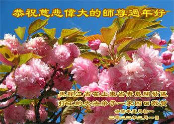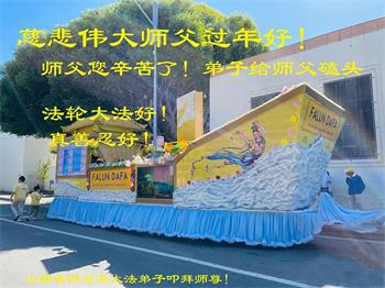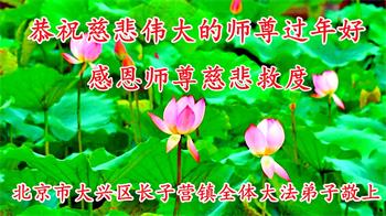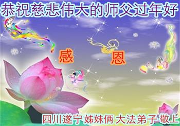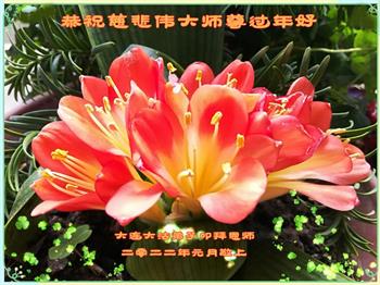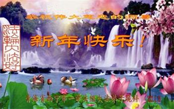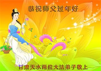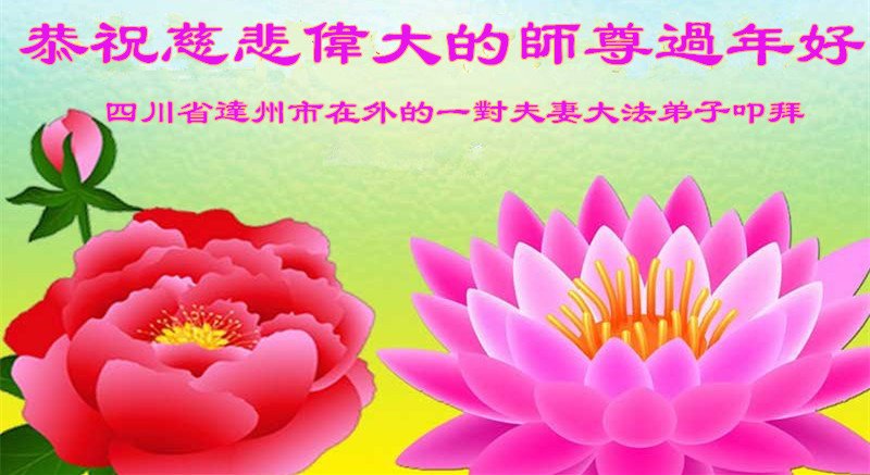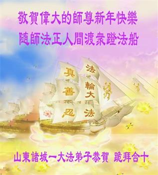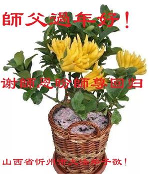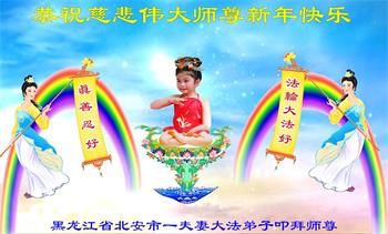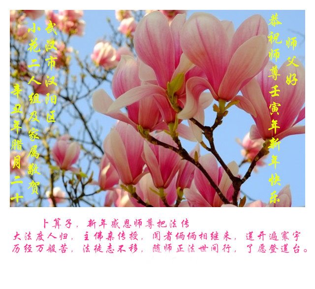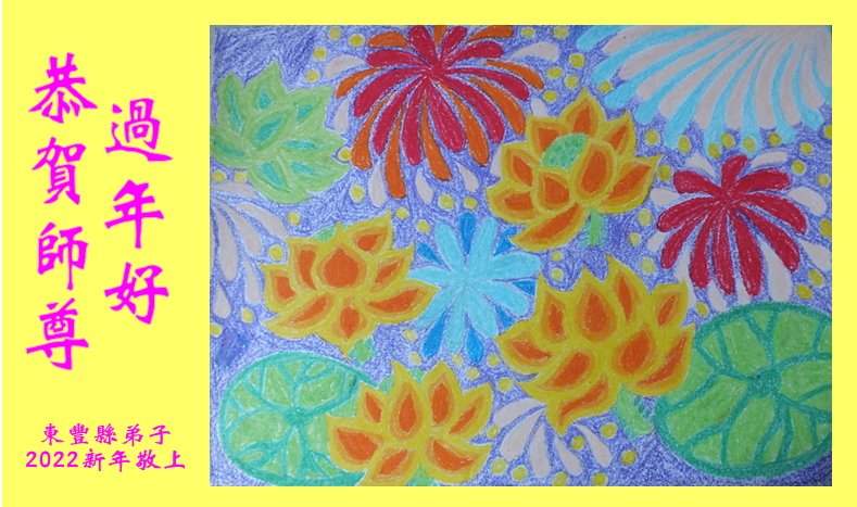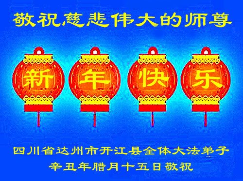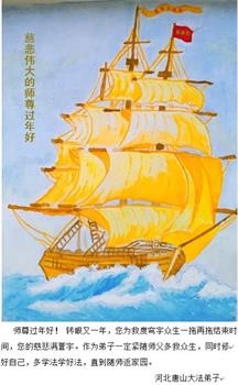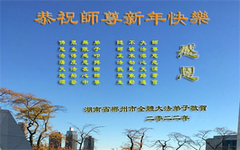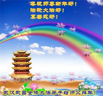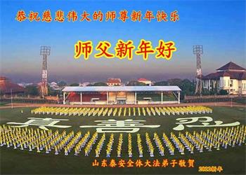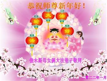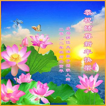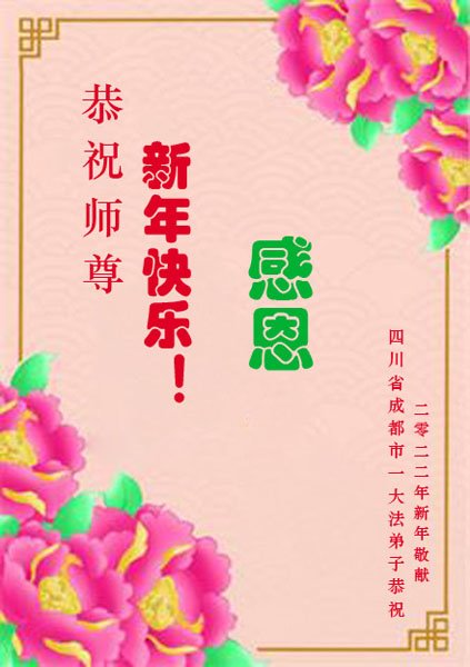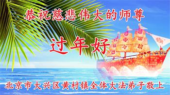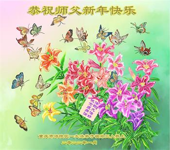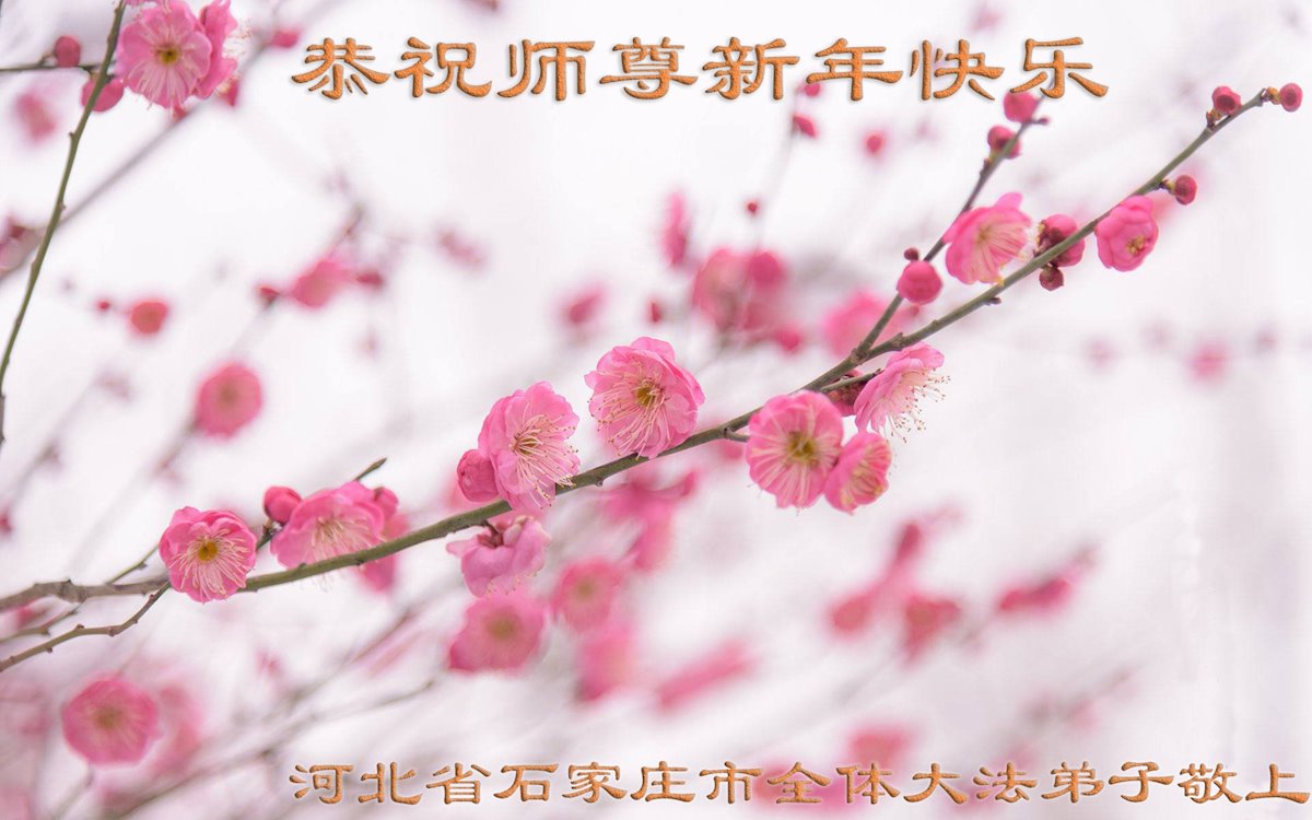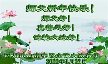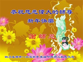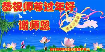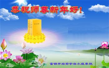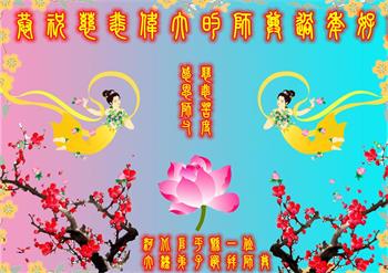 在师尊您的加持和保护下,又進入了新的一年。新的一年里,我们一定会按照师尊您的教诲,做好三件事,学好法,修好自己、多救人。紧跟师尊的正法進程,圆满随师还。