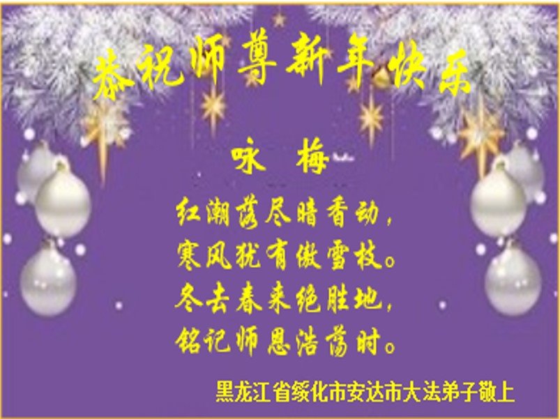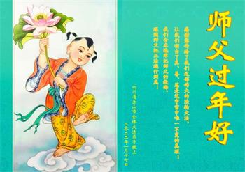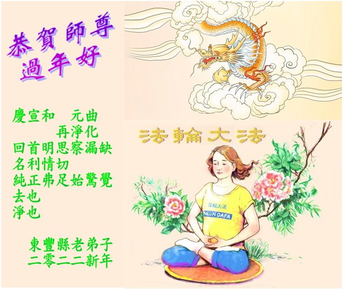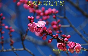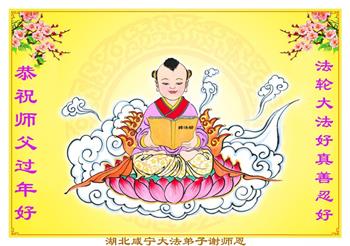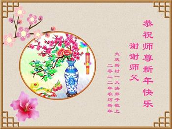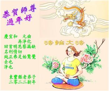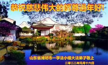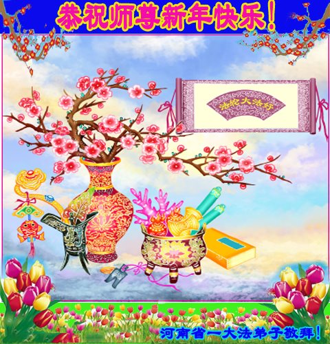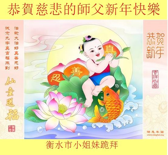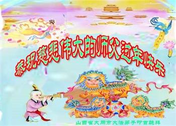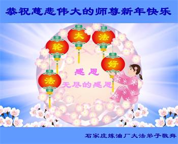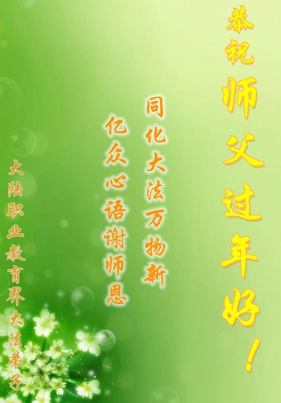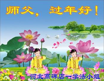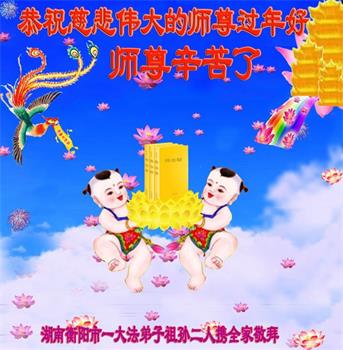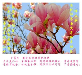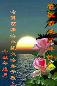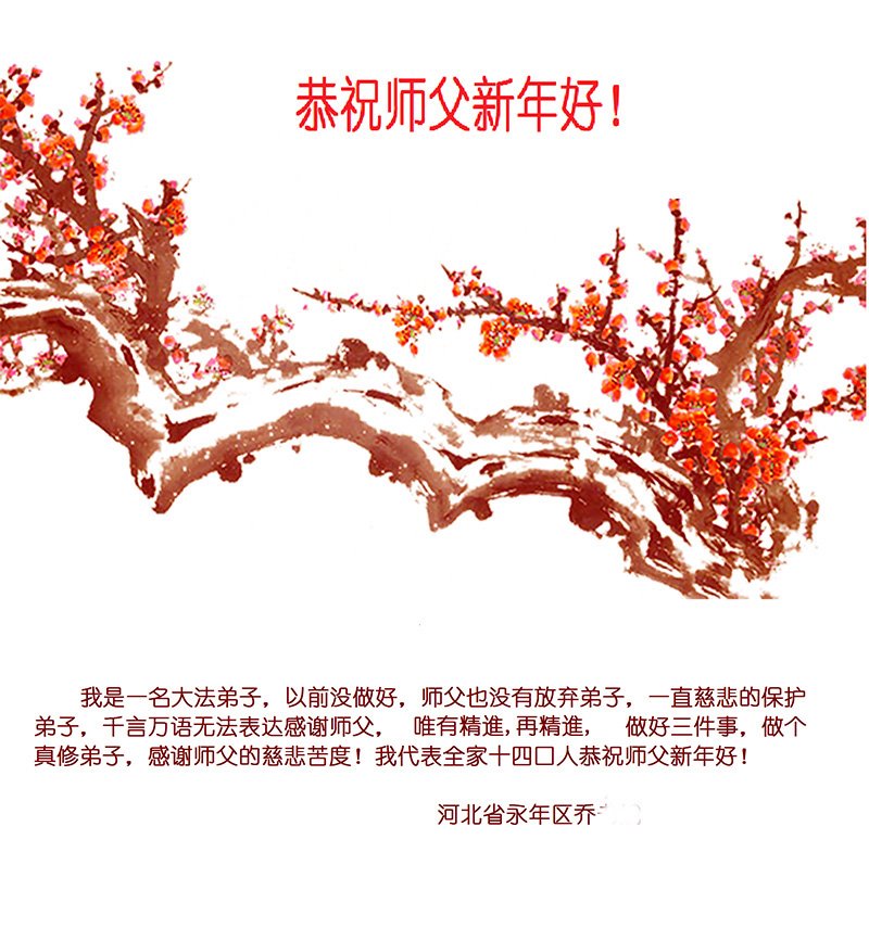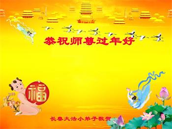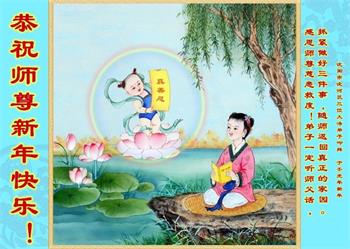 弟子遵循师父的教诲:多学法,学好法,集中念力发正念,讲清真相多救人。让师父放心,让师父欣慰!弟子再次恭祝师父过年快乐!