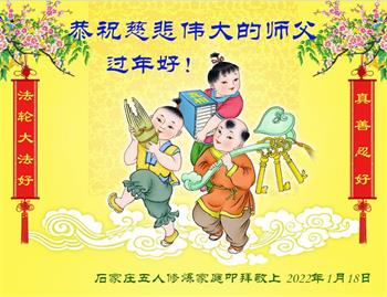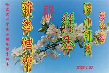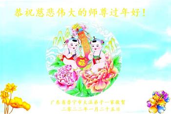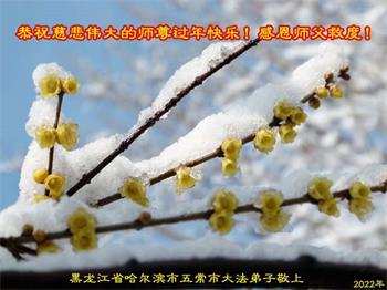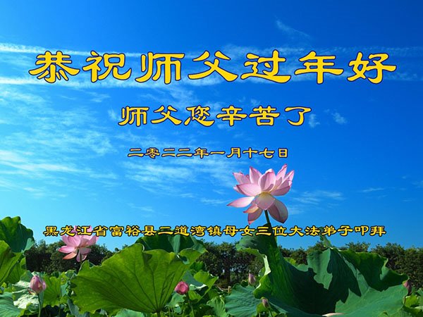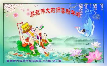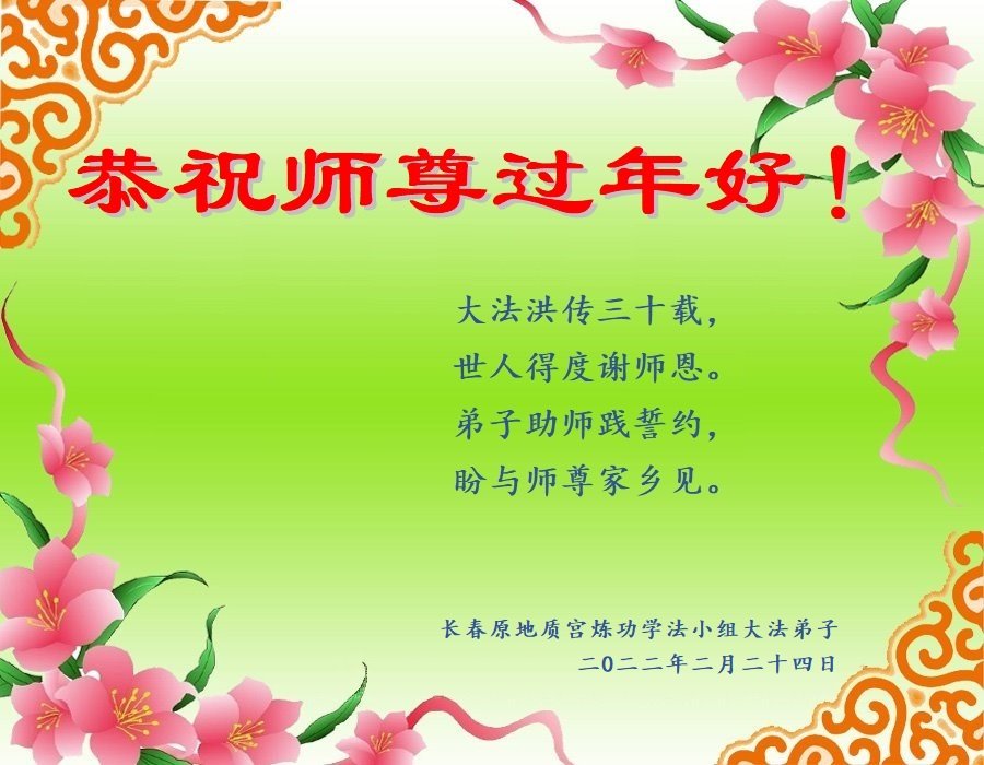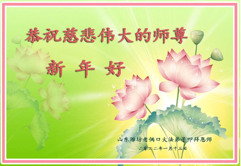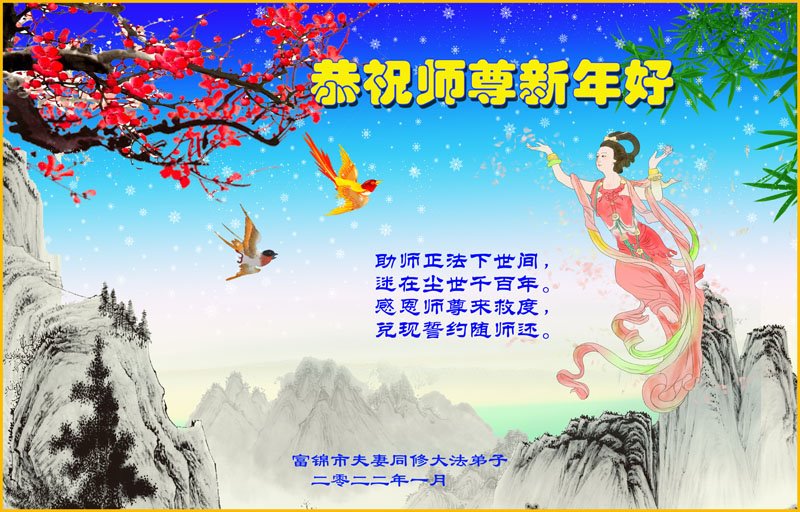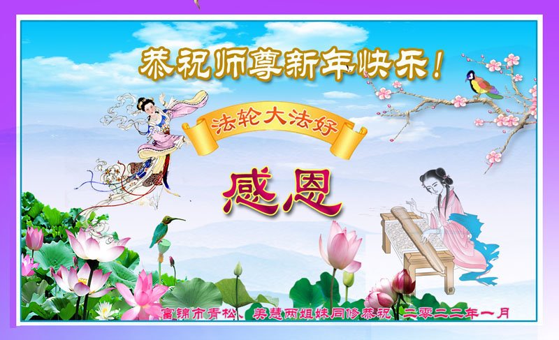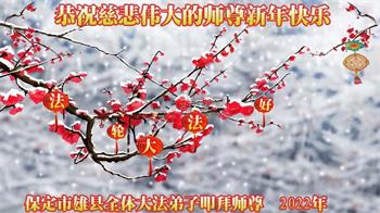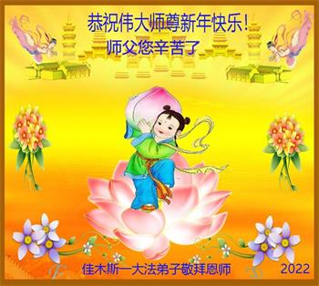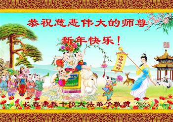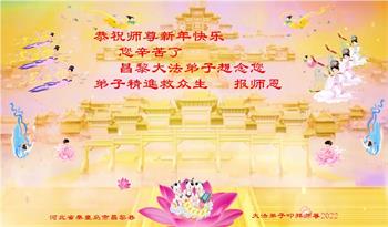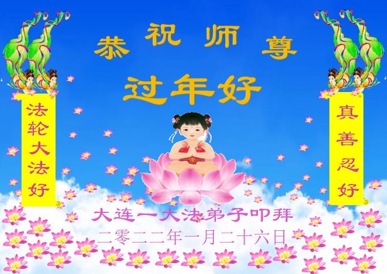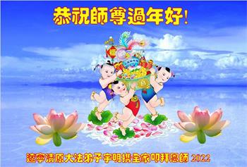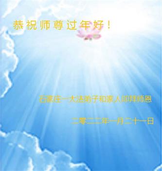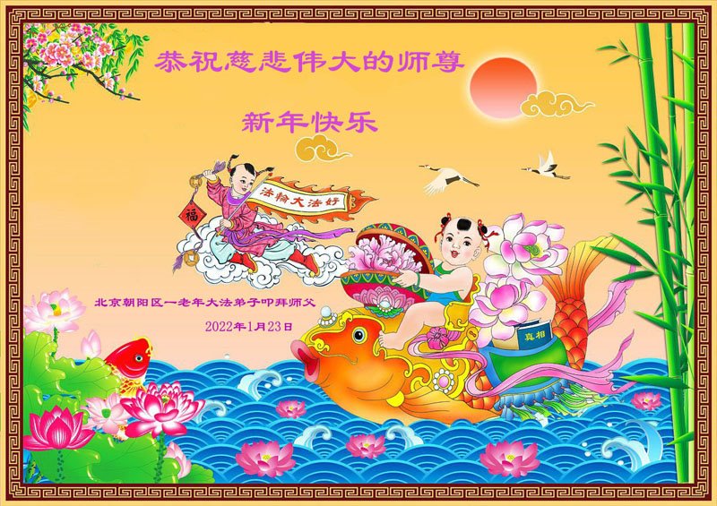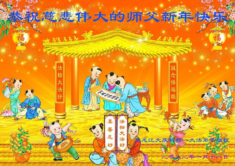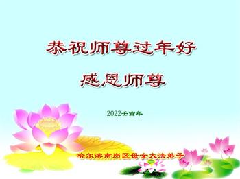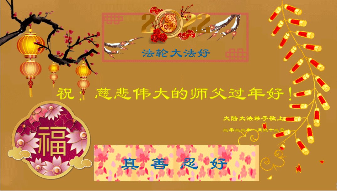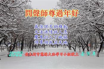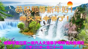 【明慧网二零二二年一月三十一日】(明慧网记者综合报道)瑞雪纷飞,新年到。师父正法救度众生走到第三十个年头,真、善、忍法理唤醒了亿万众生。在这传统佳节过大年的时刻,中国各行业的大法弟子们向远在大洋彼岸的师尊致以崇敬的节日问候!