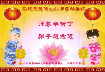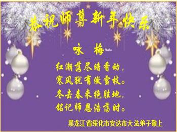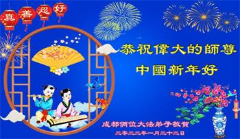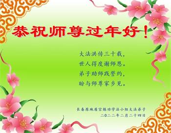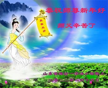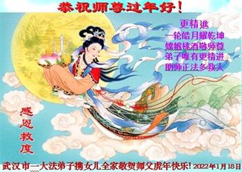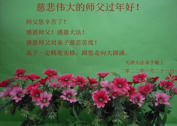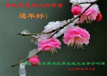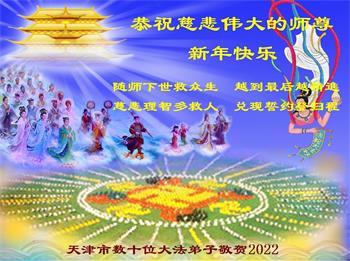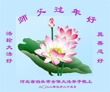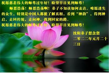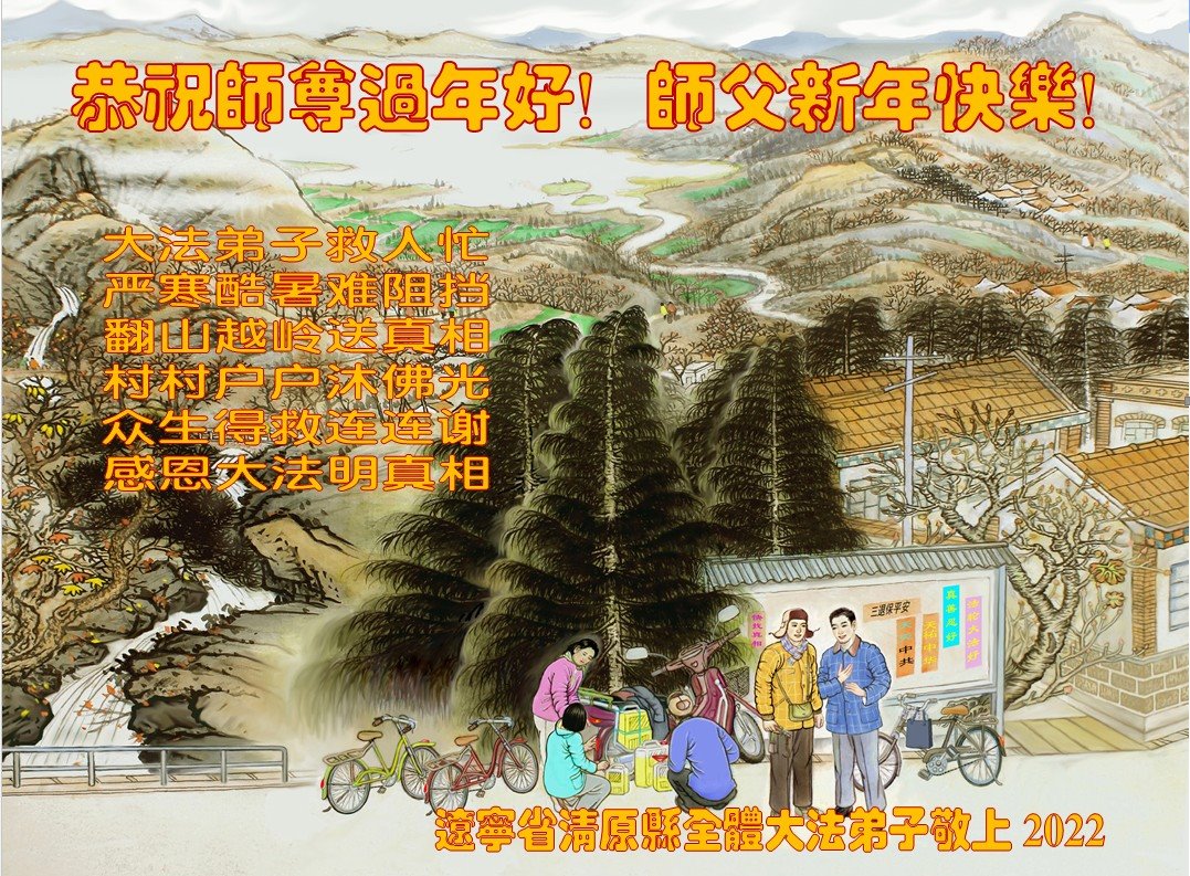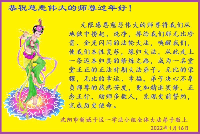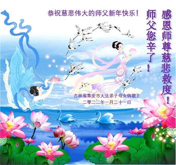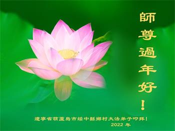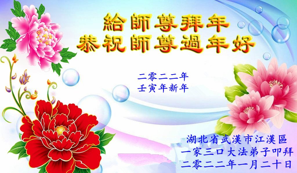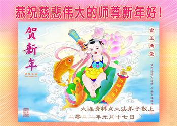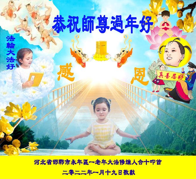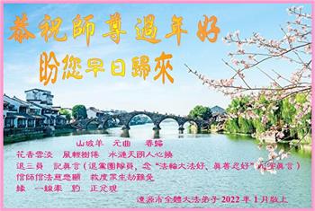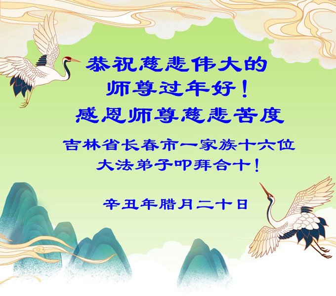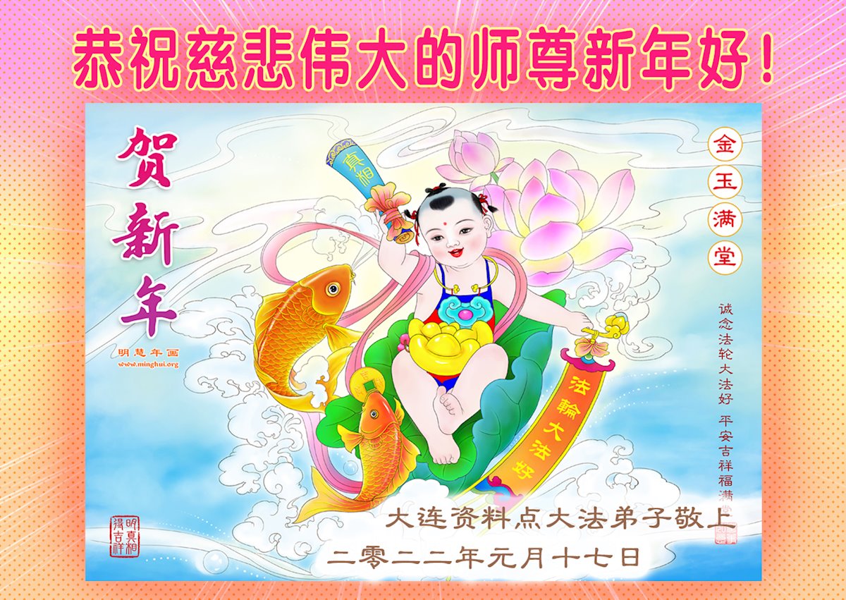 【明慧网二零二二年一月三十一日】(明慧网记者综合报道)瑞雪纷飞,新年到。师父正法救度众生走到第三十个年头,真、善、忍法理唤醒了亿万众生。在这传统佳节过大年的时刻,中国各行业的大法弟子们向远在大洋彼岸的师尊致以崇敬的节日问候!