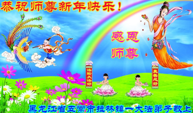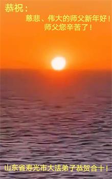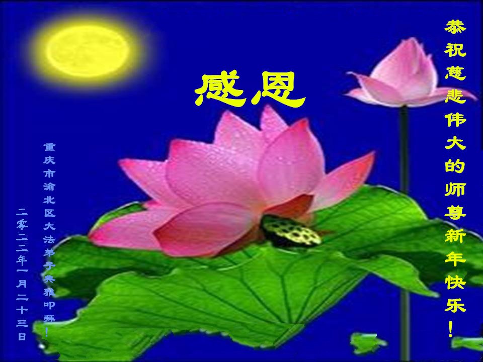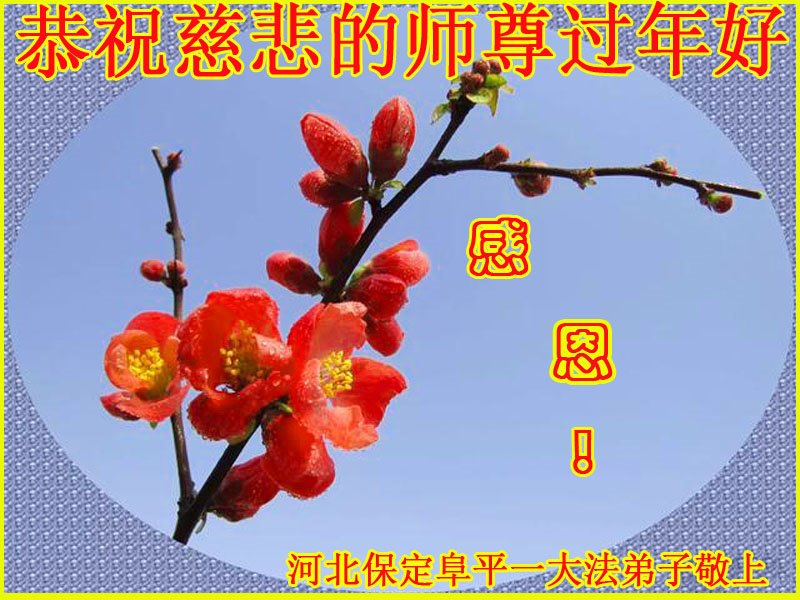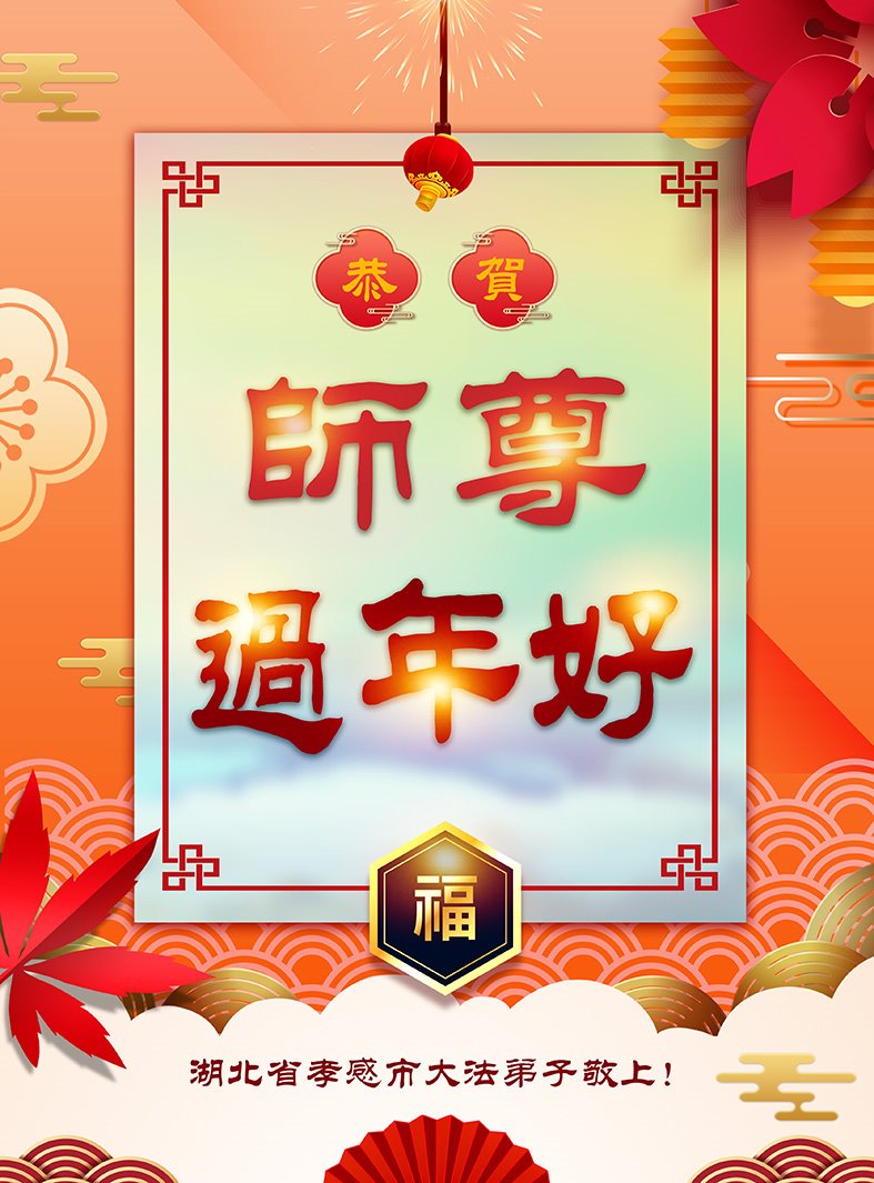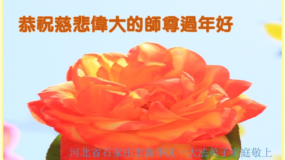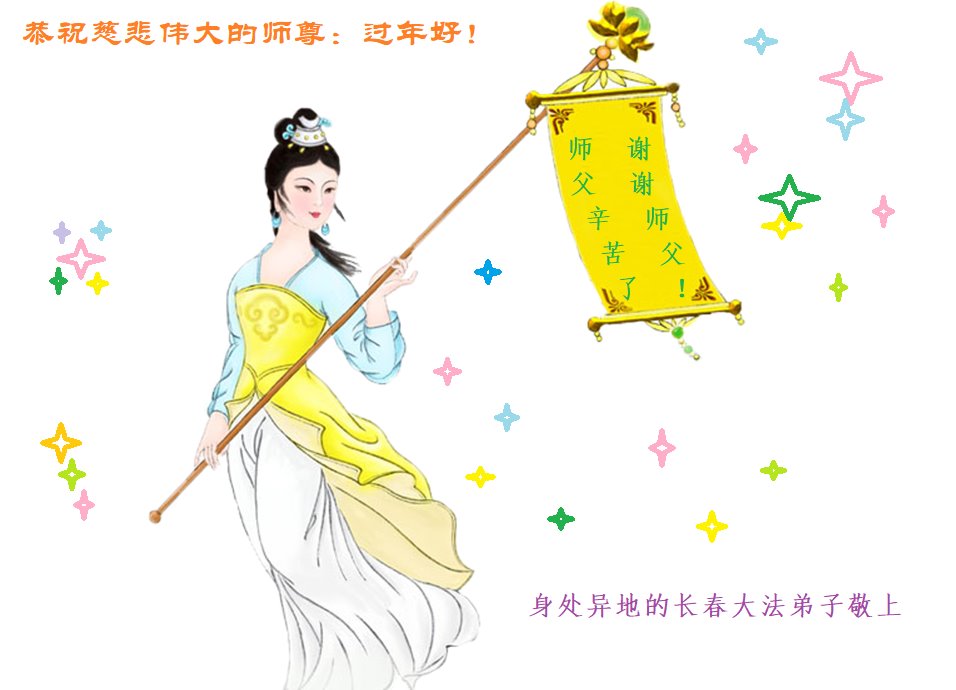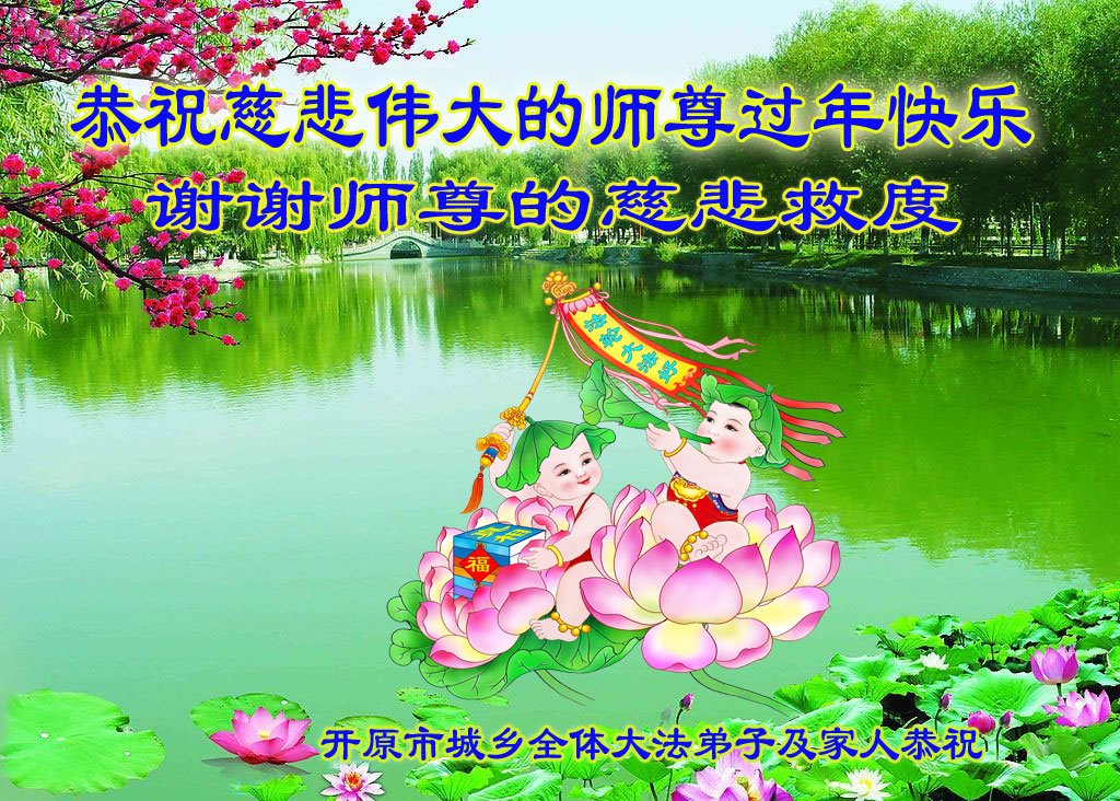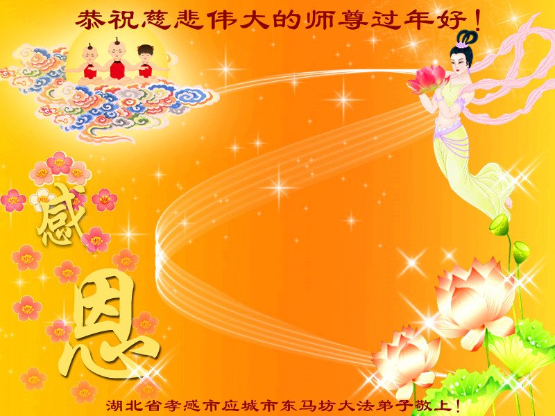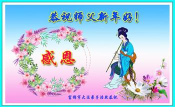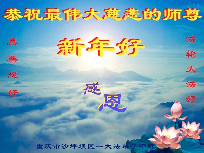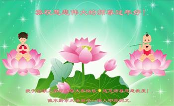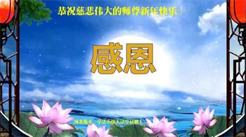 在新春佳节到来之际,弟子怀着无限感恩的心,恭祝慈悲伟大的师尊新年快乐!师尊您辛苦了!您为无量众生付出了无尽的辛苦,您无尽的慈悲驱散了阴霾,照亮了寰宇,在劫难中得救的众生对师尊只有无尽的感恩!无尽的感恩!