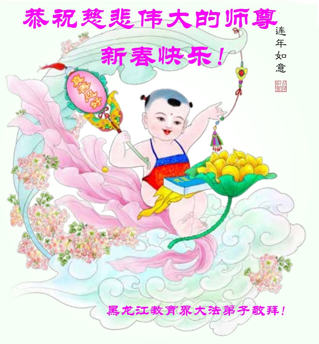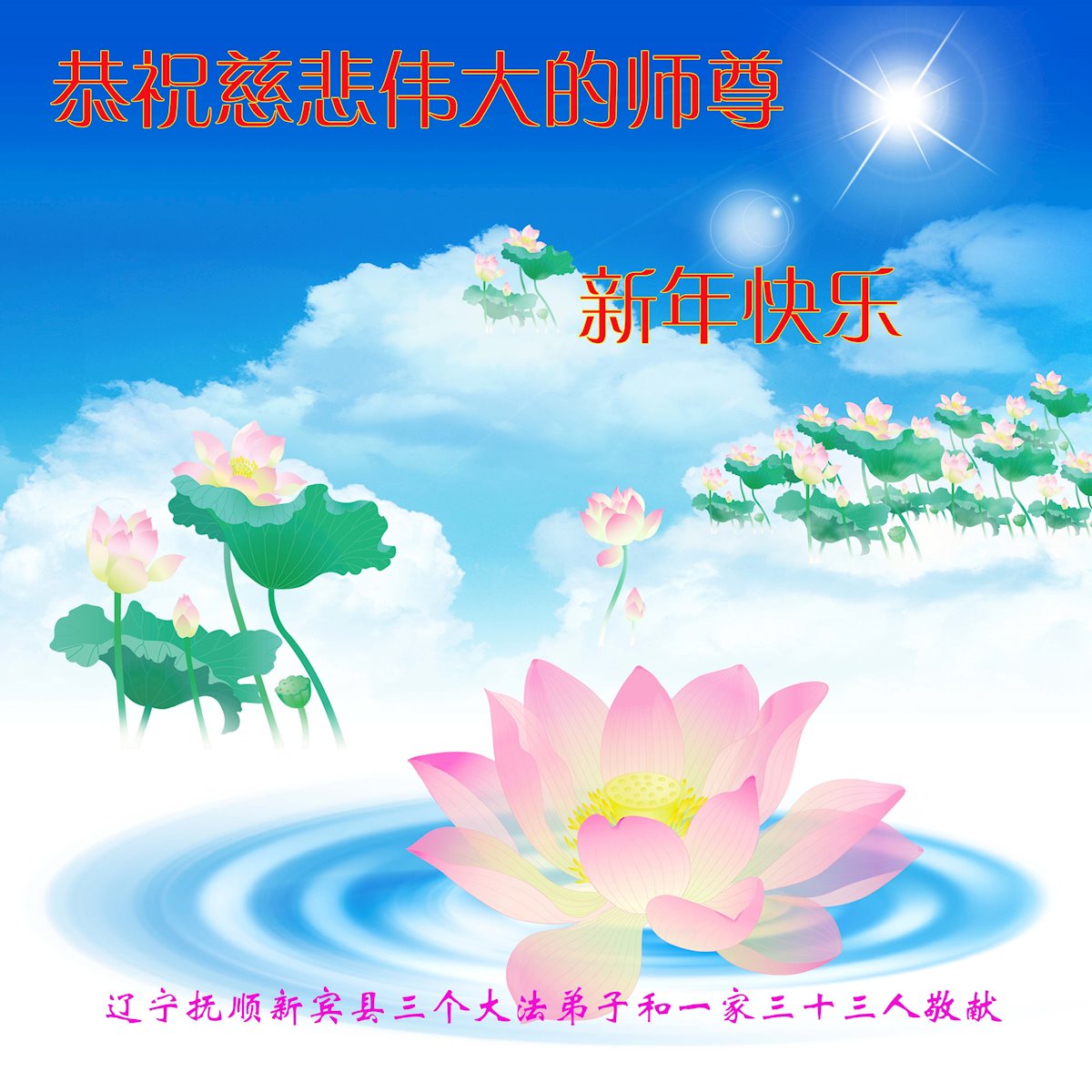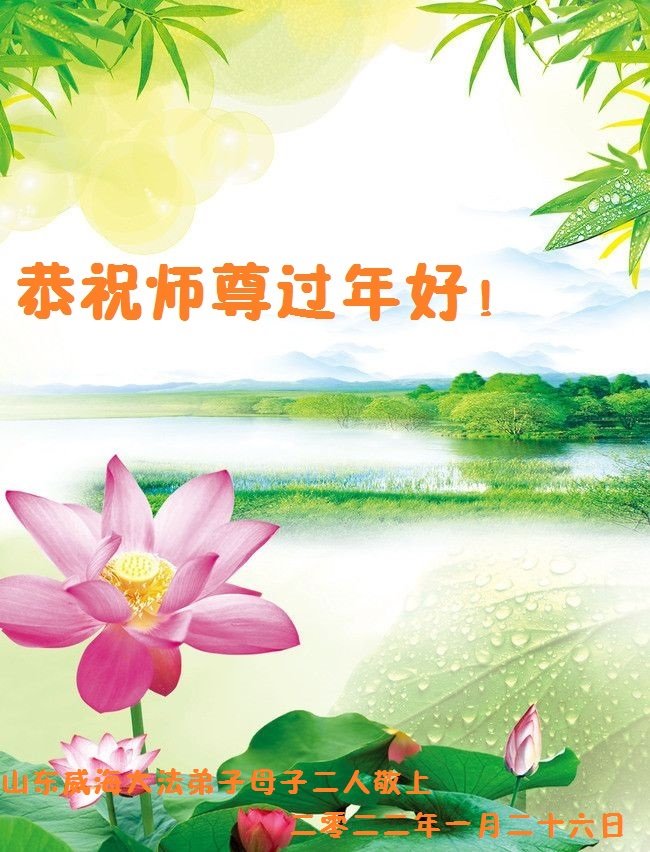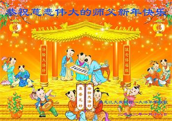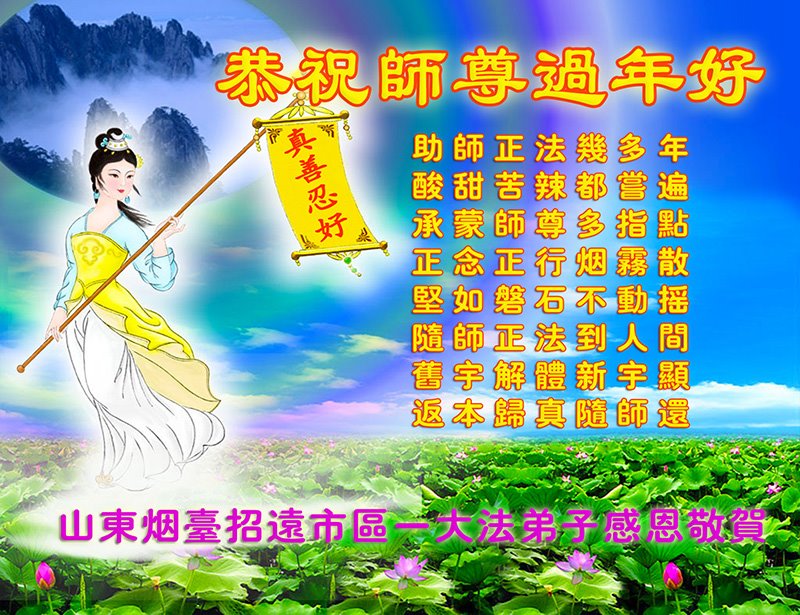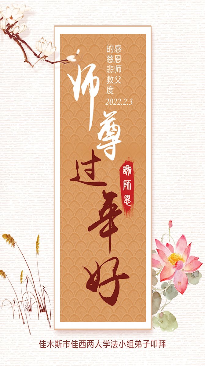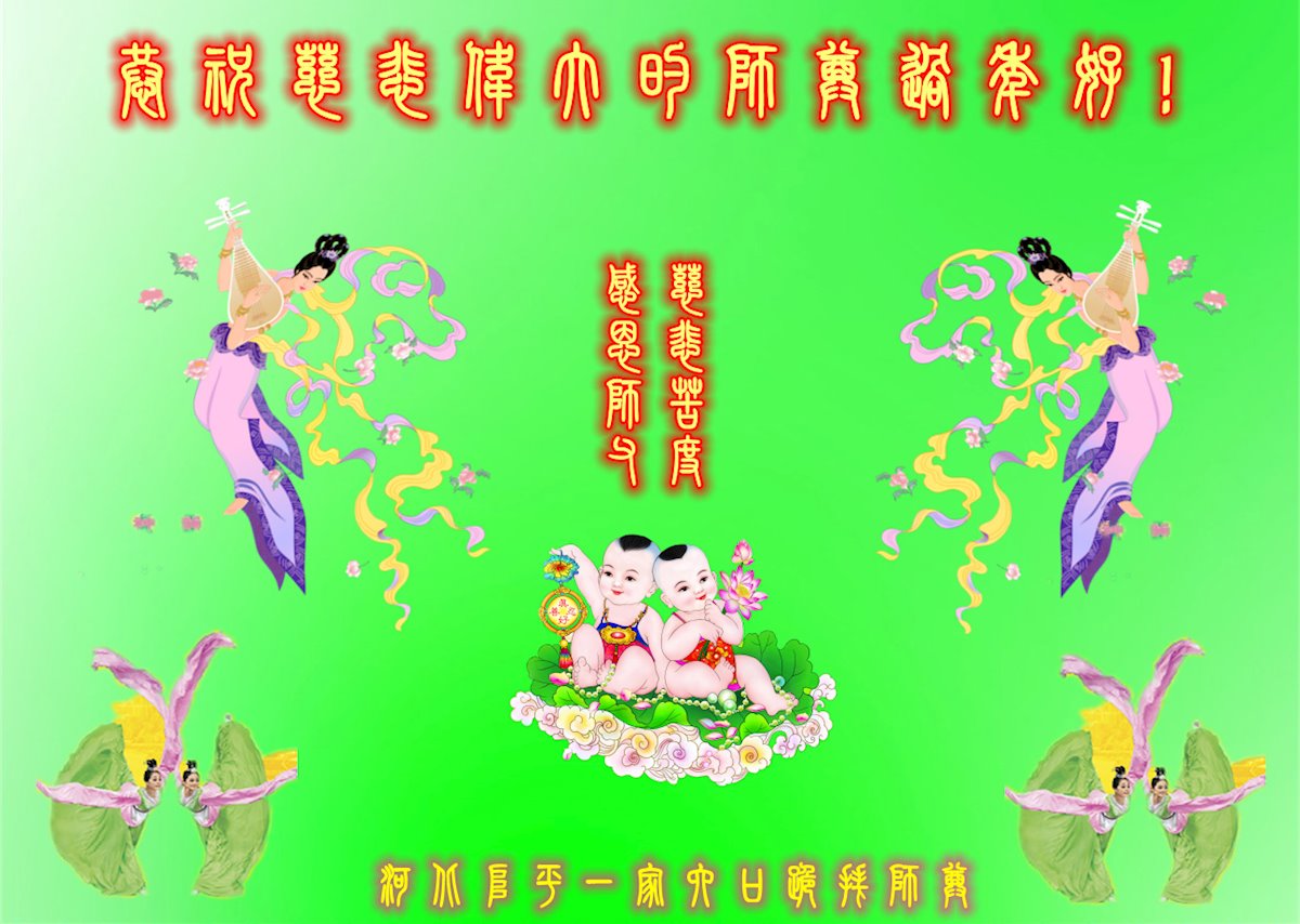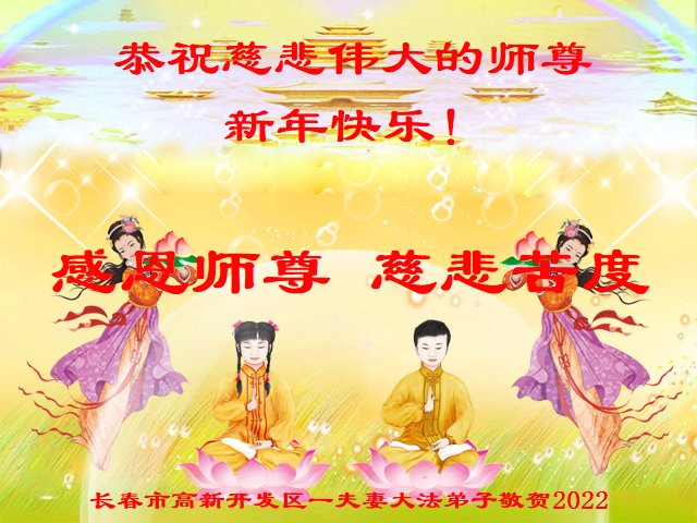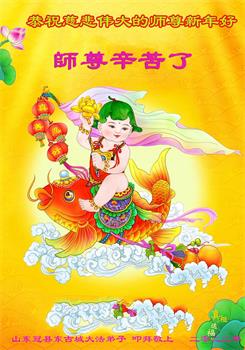 在新春佳节到来之际,弟子怀着无限感恩的心,恭祝慈悲伟大的师尊新年快乐!师尊您辛苦了!您为无量众生付出了无尽的辛苦,您无尽的慈悲驱散了阴霾,照亮了寰宇,在劫难中得救的众生对师尊只有无尽的感恩!无尽的感恩!
