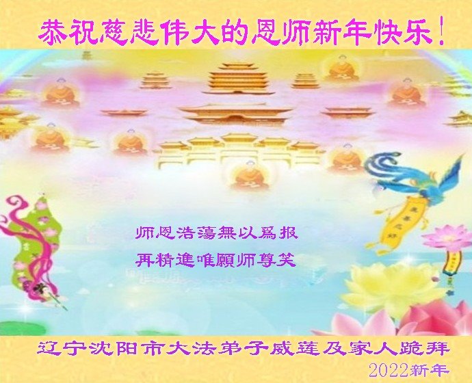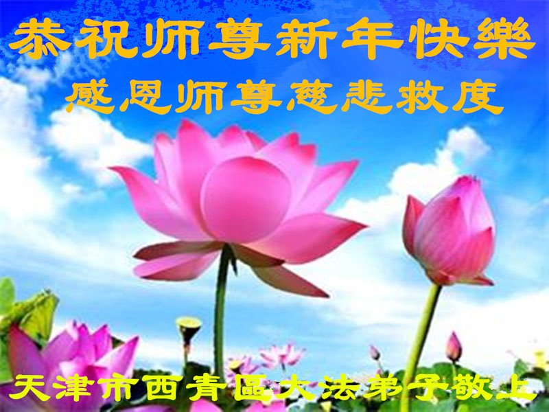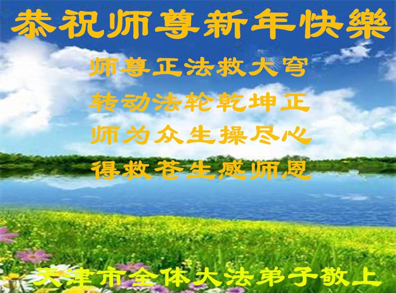 在您的慈悲保护下,我们又顺利的度过了不平凡的一年。师父为弟子的巨大承受和付出,我们无法得知,也无法回报,只能在心里牢记师恩。在新的一年里,弟子会一直坚定不移的跟随师父指引的正法之路前進不停,用心学好法,实修好自己,抓紧时间救人,回报师父的救度之恩。师父,弟子想念您。恭祝师父新年快乐!叩拜伟大的师父!