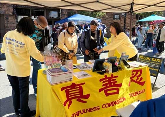 法轮功学员在纽约州首府奥伯尼艺术节上讲真相