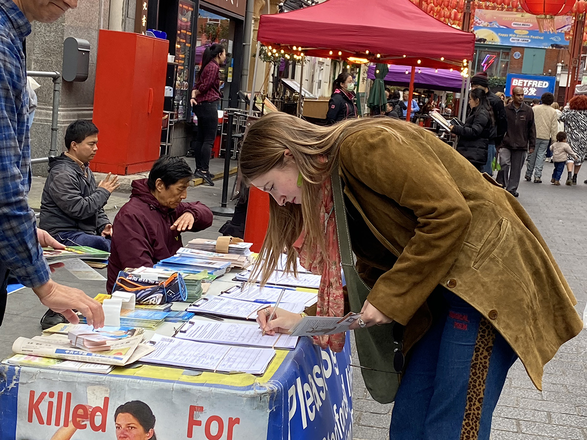 凯(Kai)是伦敦当地的学生,她在征签表上签名后,表示“签字的人越多,就会有越多人关注中共的迫害,这股力量大了,就能起到制止迫害的作用。”