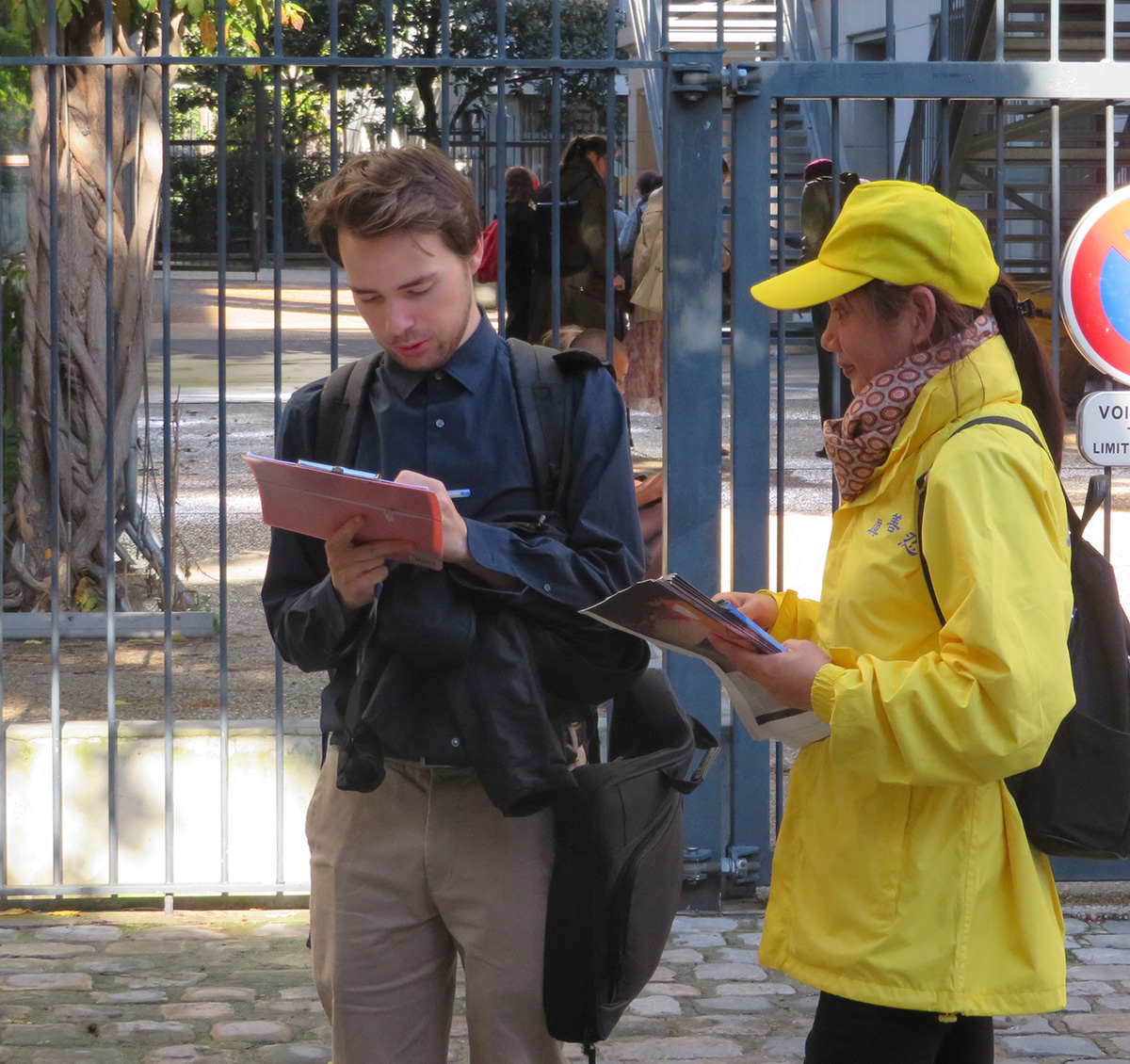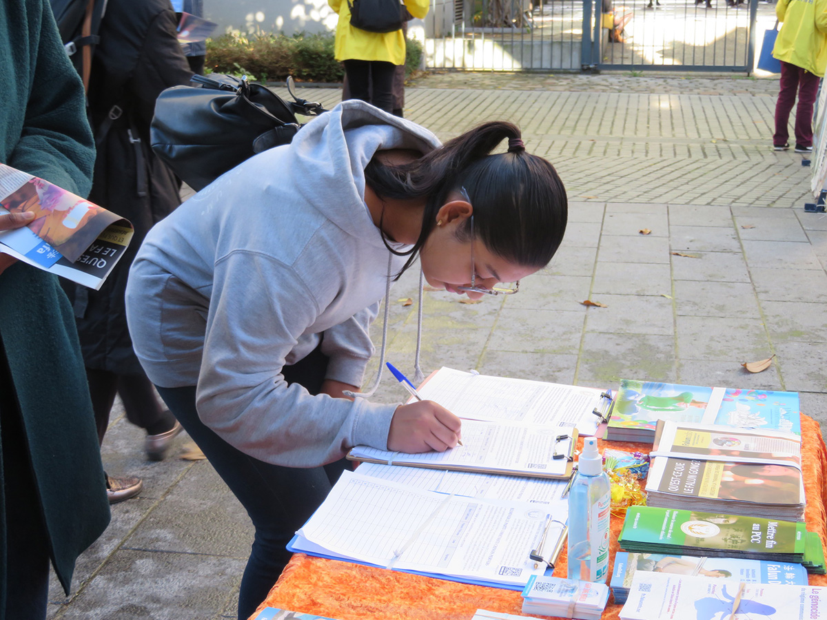 在巴黎城大学校园里弘法 揭露中共迫害