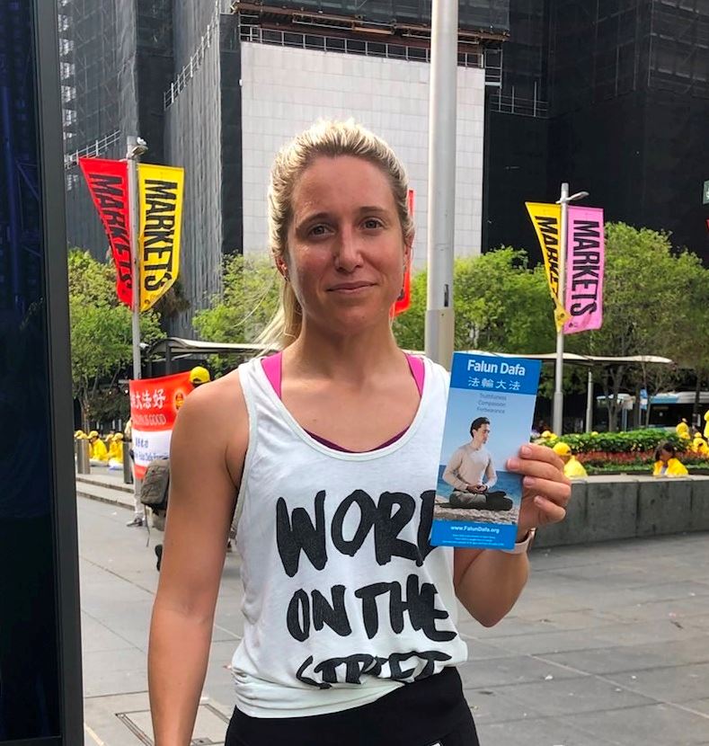 西澳一家酒店的老板达琳・科尔(Darlene Cole)到悉尼探亲,看到学员们的炼功场景也感到震撼,她表示,认同法轮功的真、善、忍原则,“如果我们每个人都能遵循真、善、忍,世界将会变得更加美好。”她说。