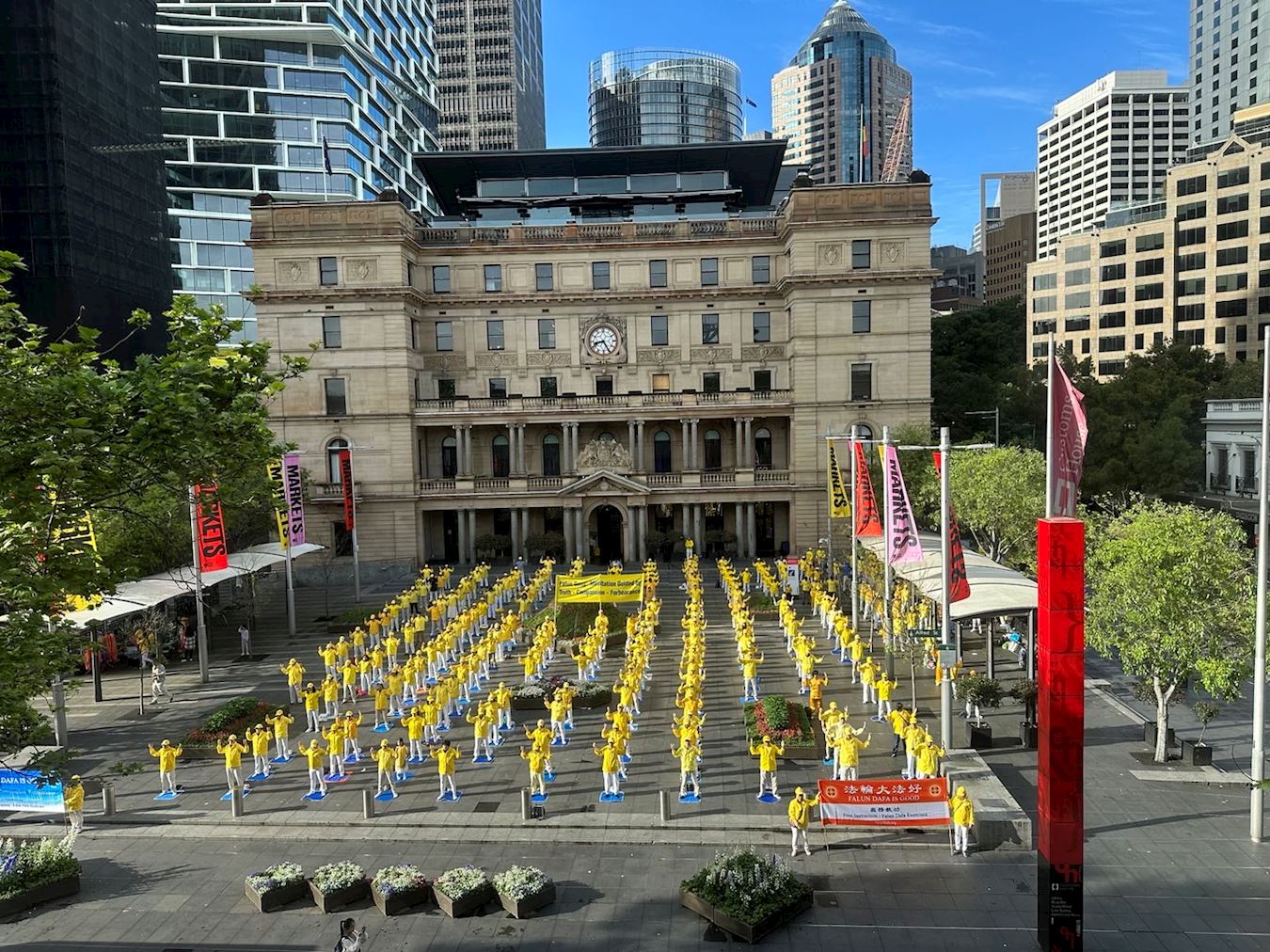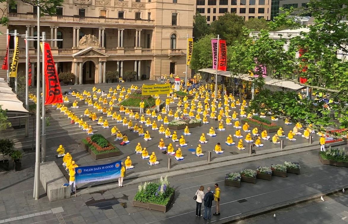 图1~3:二零二二年十月七日,数百名法轮功学员在悉尼市中心举行了集体晨炼。
