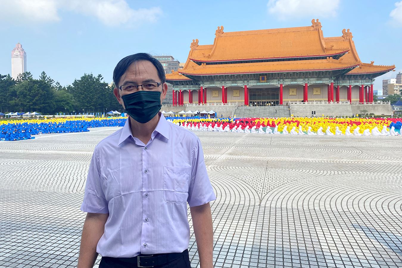 除了拍照记录外,周女士也表示,她知道美国也有很多法轮功学员,但这是她第一次在台湾看到这么多法轮功学员,身为基督徒的她,过去没有特别了解法轮功,但知道中共迫害法轮功的真相。她觉得应该要尊重不同的信仰。她们今天看到法轮功的功法,感受到祥和美好,也明白了法轮功以真、善、忍为修炼准则提高心性、辅以五套功法,可在极短时间内达到祛病健身,是性命双修功法,也开心地想要炼法轮功。