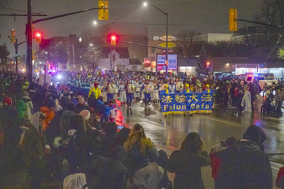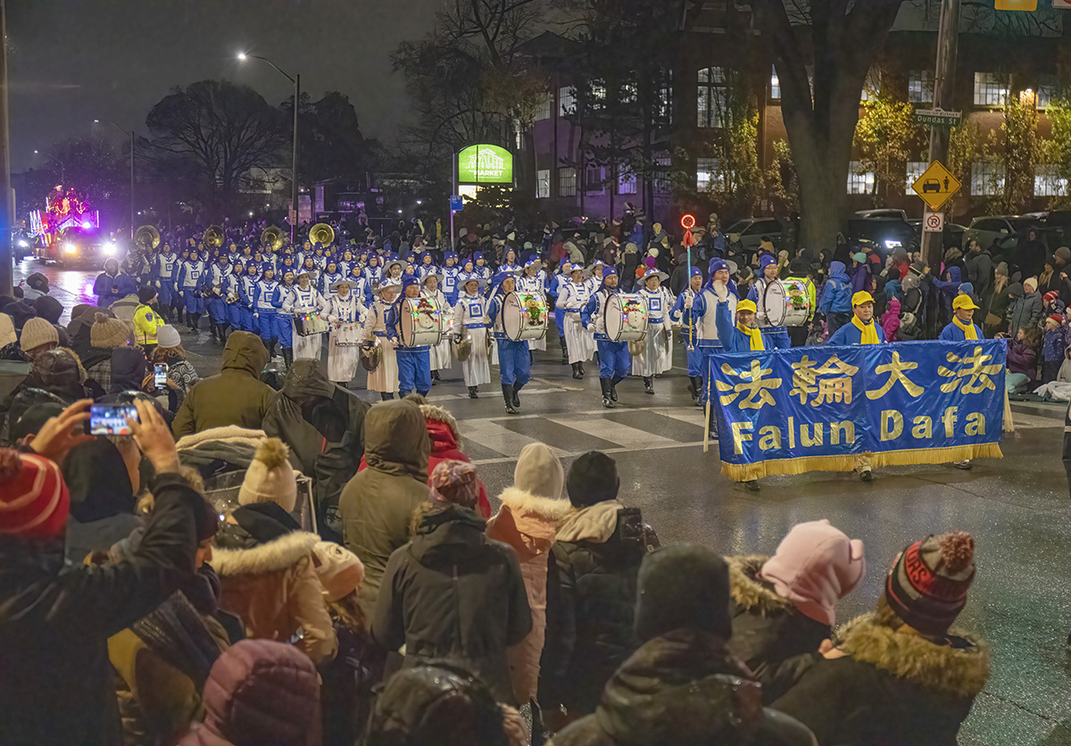 ![]() 图1~4:2022年11月12日晚上6点,由多伦多法轮功学员组成的天国乐团应邀参加了第六十六届伦敦圣诞老人大游行(London's Original Santa ClausL Parade) |