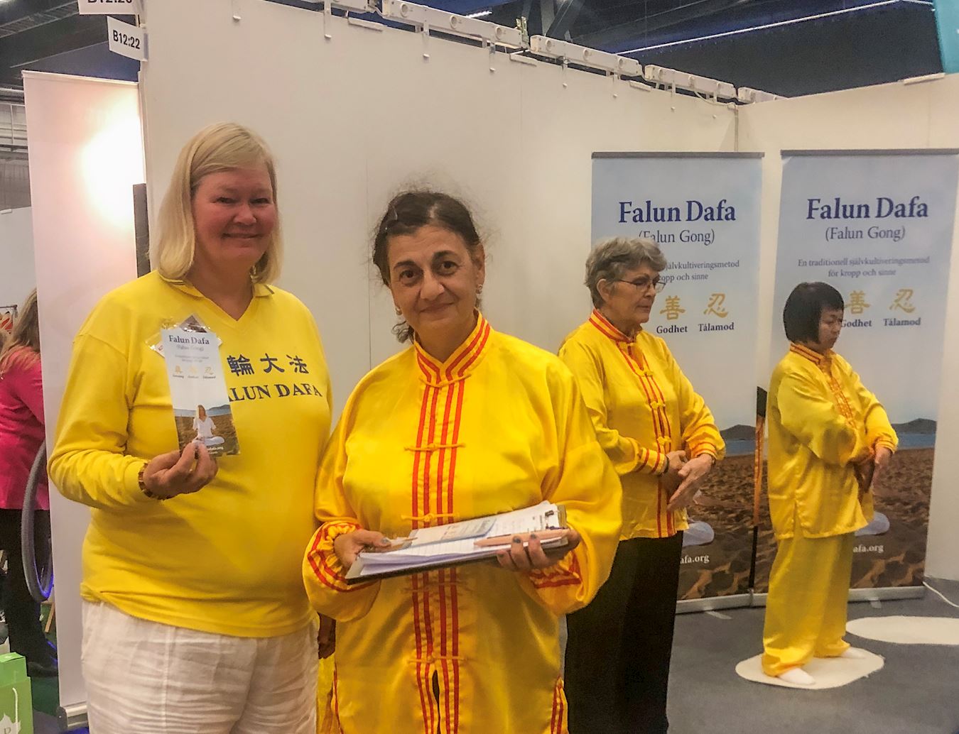 她还向来自瑞典各地及英国、西班牙、比利时等欧洲其他国家的参观者介绍法轮功,讲述法轮功在中国无辜遭受迫害的情况。人们明白真相后纷纷谴责中共暴行,并表示对功法很感兴趣,当他们得知当地、本国也有炼功点时都很高兴,并收下了真相传单,表示回去会上网了解。