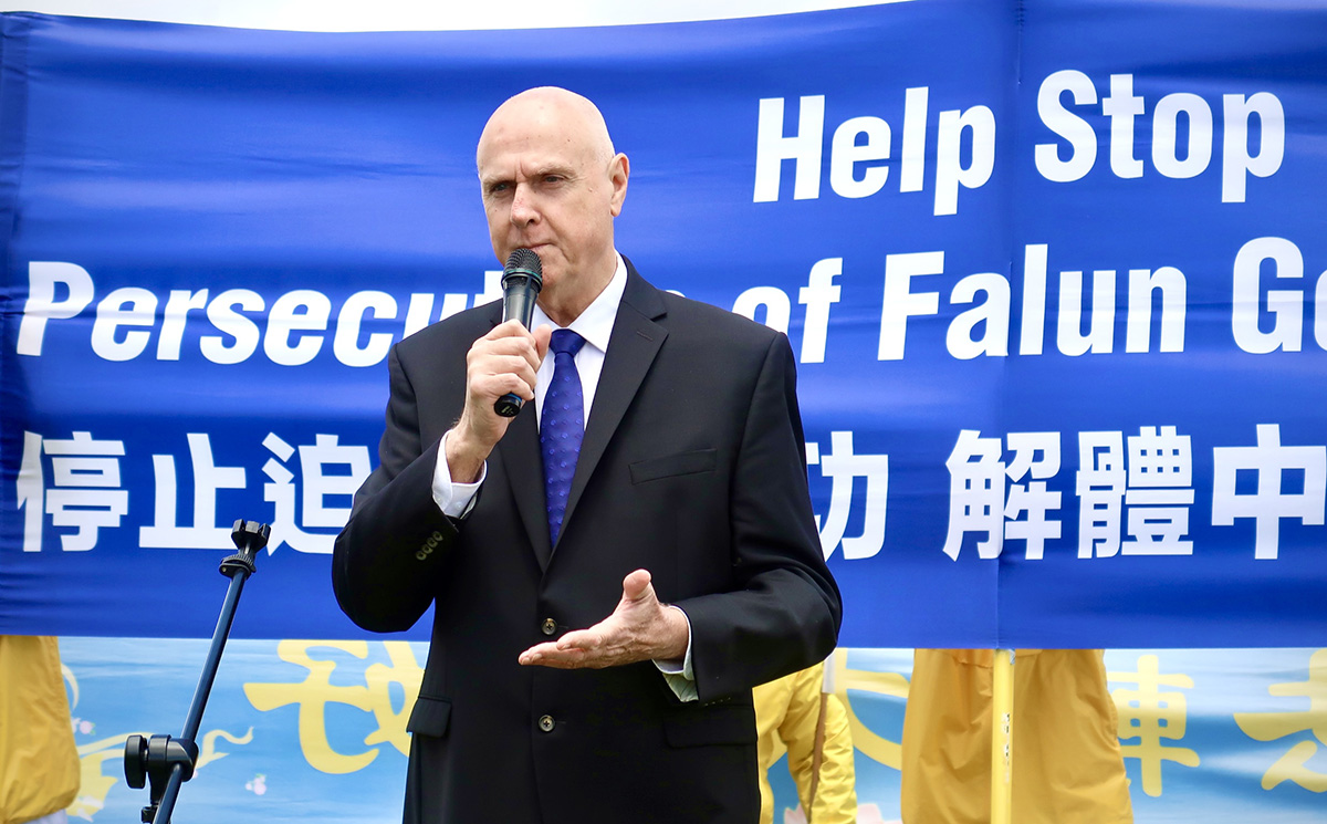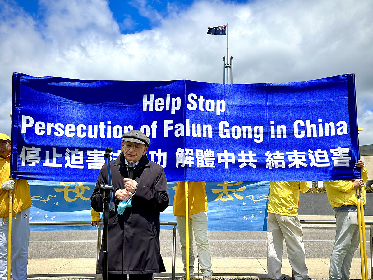 著名人权律师麦塔斯(David Matas)在集会上敦促澳洲政府立法、禁止澳洲人前往中国进行器官移植,以及制止中共对法轮功的迫害,以及为器官而杀害良心犯,包括法轮功学员、维吾尔人和其他人。