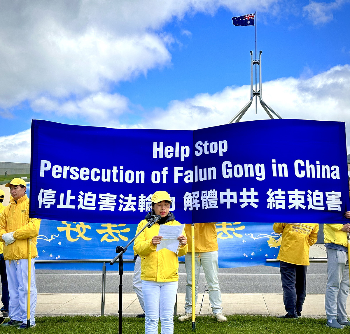 在集会上发言,多位法轮功学员讲述了自己和家人遭受中共迫害的经历,呼吁澳洲政府通过了解修炼真、善、忍的法轮功学员所遭受到的迫害,真正了解中共的邪恶本性,从而远离中共。
