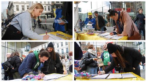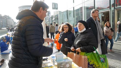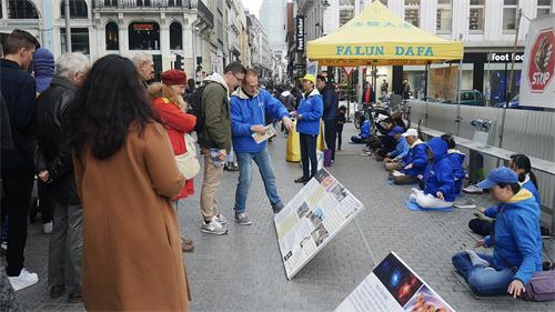 ![]() 图1~5:秋假的最后一个周末,比利时法轮功学员在商业大街上弘法,并征集反迫害签名 |