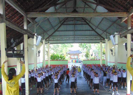 十二月七日,部分印尼法轮功学员,来到巴里岛斯马拉布拉国立第一高等中学,向这里的师生介绍法轮大法以及炼功功法。