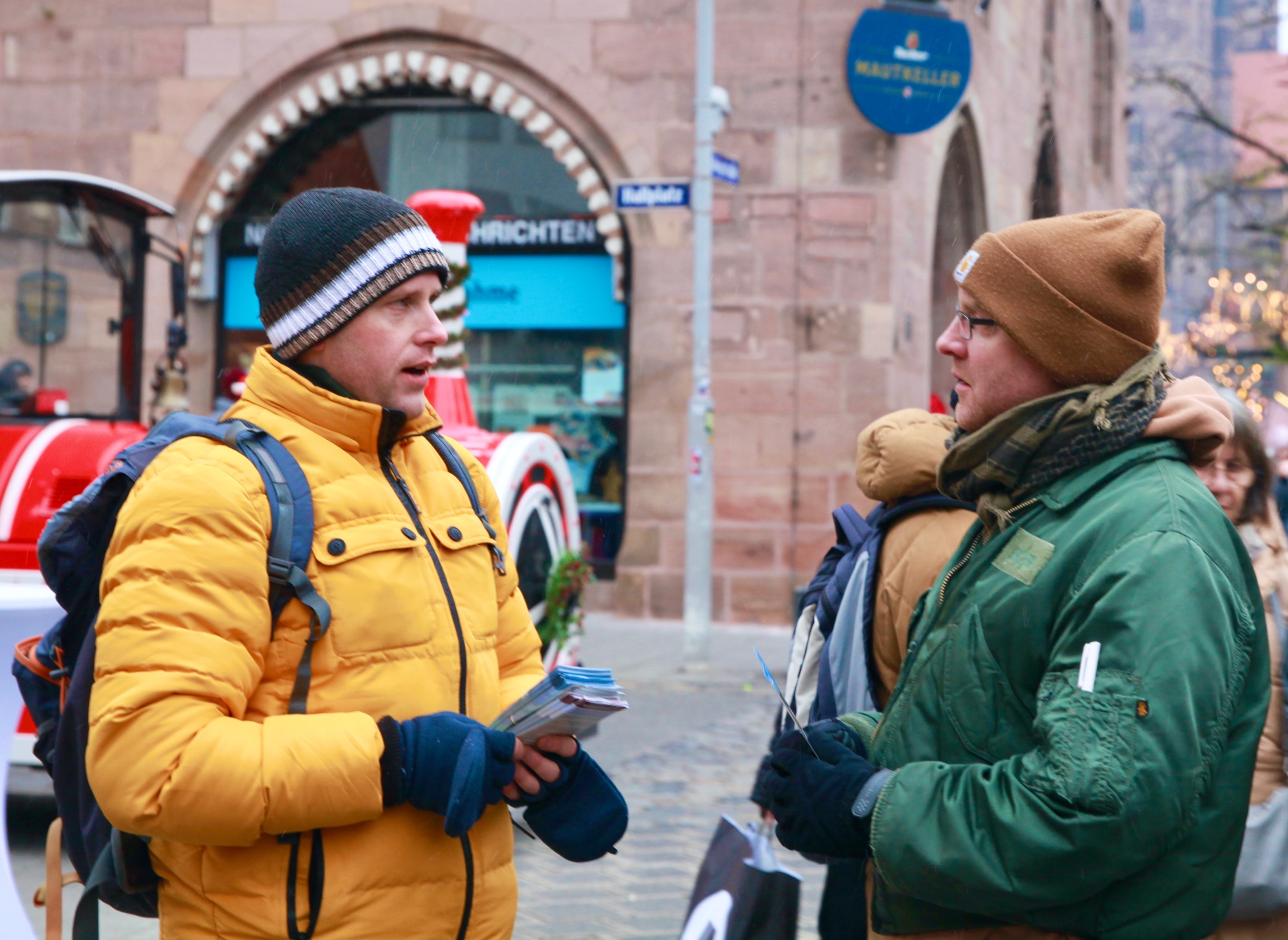 图1~2:二零二二年十二月十日国际人权日,法轮功学员在德国纽伦堡集会,揭露中共二十三年来对法轮功学员的迫害,以及活摘法轮功学员器官的罪行。