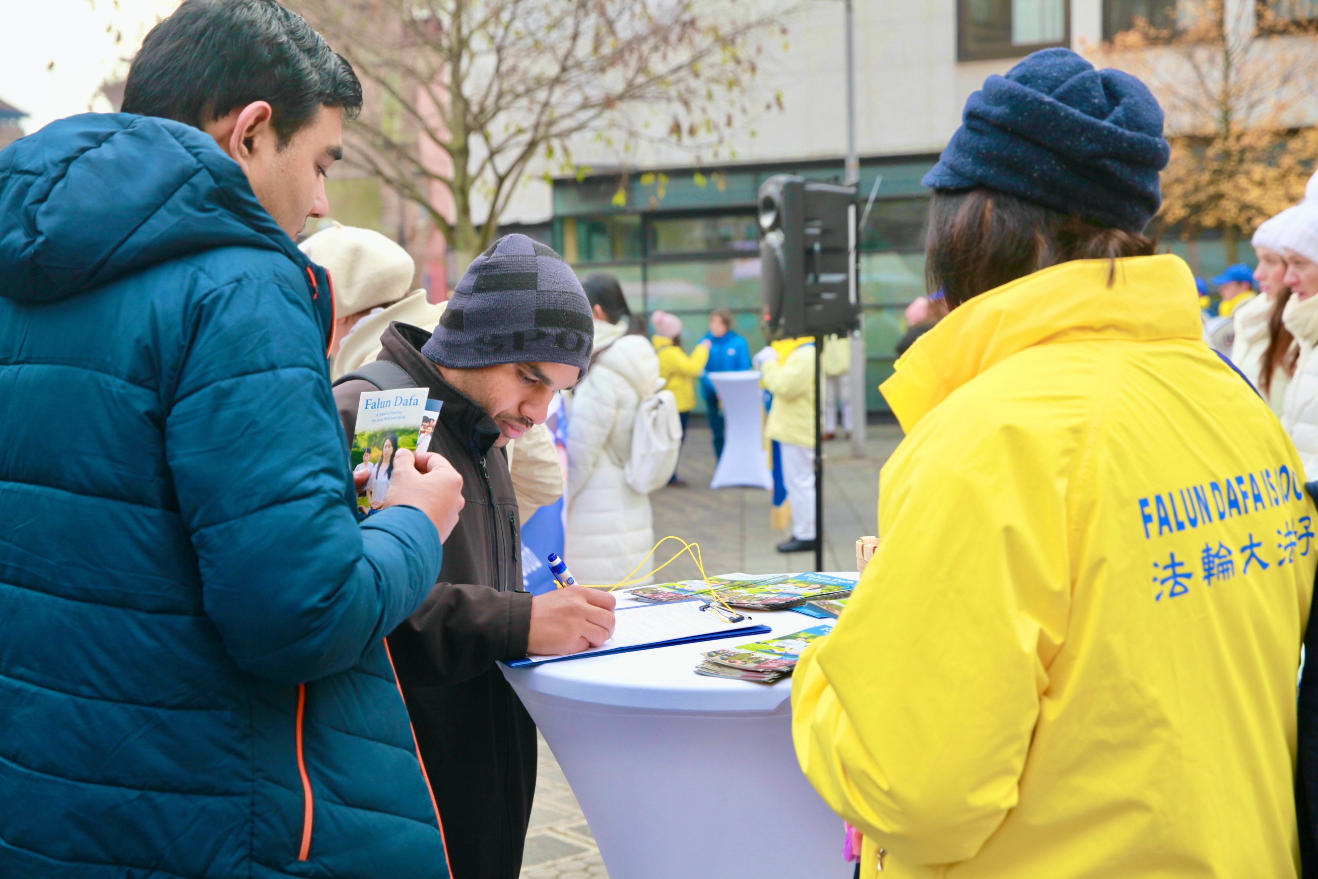 图8~9:人们签名声援法轮功学员反迫害。