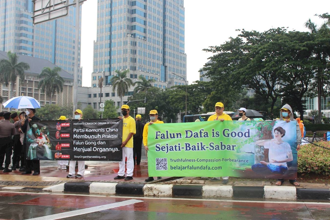 【明慧网二零二二年十二月二十一日】二零二二年十二月十七日周六下午,法轮功学员在雅加达商务区举行和平活动,拉开横幅呼吁中共立即停止已延续二十三年的对中国法轮功的迫害