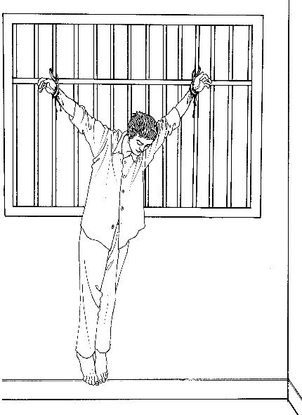 罗明春,女,于二零一九年八月被绑架、非法抄家、关押构陷,在西昌市看守所遭受到被吊铐在大门上折磨(双手全部打开,只许脚尖沾地),人非常痛苦。全身的重量几乎都在双手上,双手一会儿就乌黑,全身疼痛难忍,呼吸困难,口干舌燥,大约被吊铐了一上午,双手被吊伤,手铐铐的地方大部份是乌黑血青的。看守所经常用吊挂的方式惩罚其他在押人员。