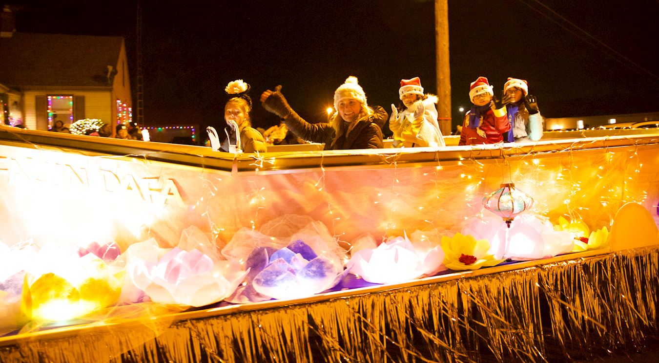 顿迪古董与艺术品(Dundee Antiques & Art)商店的店主瑞丽(Riley)女士表示这是自己第二十八年连续观看灯光游行,来支持社区的活动,让人们更加亲近,友爱。