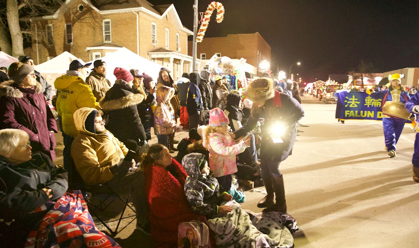 时隔数年,法轮功学员们再次来到了艾达镇。尽管游行当晚的气温已降至零摄氏度以下,人们的热情丝毫不受影响,熙熙攘攘的挤在艾达镇中心街道两旁,观看数以万计的各式灯光方阵。当一阵阵整齐有力的鼓声响起,很多人都惊叹道:“这是中国人的队伍!”