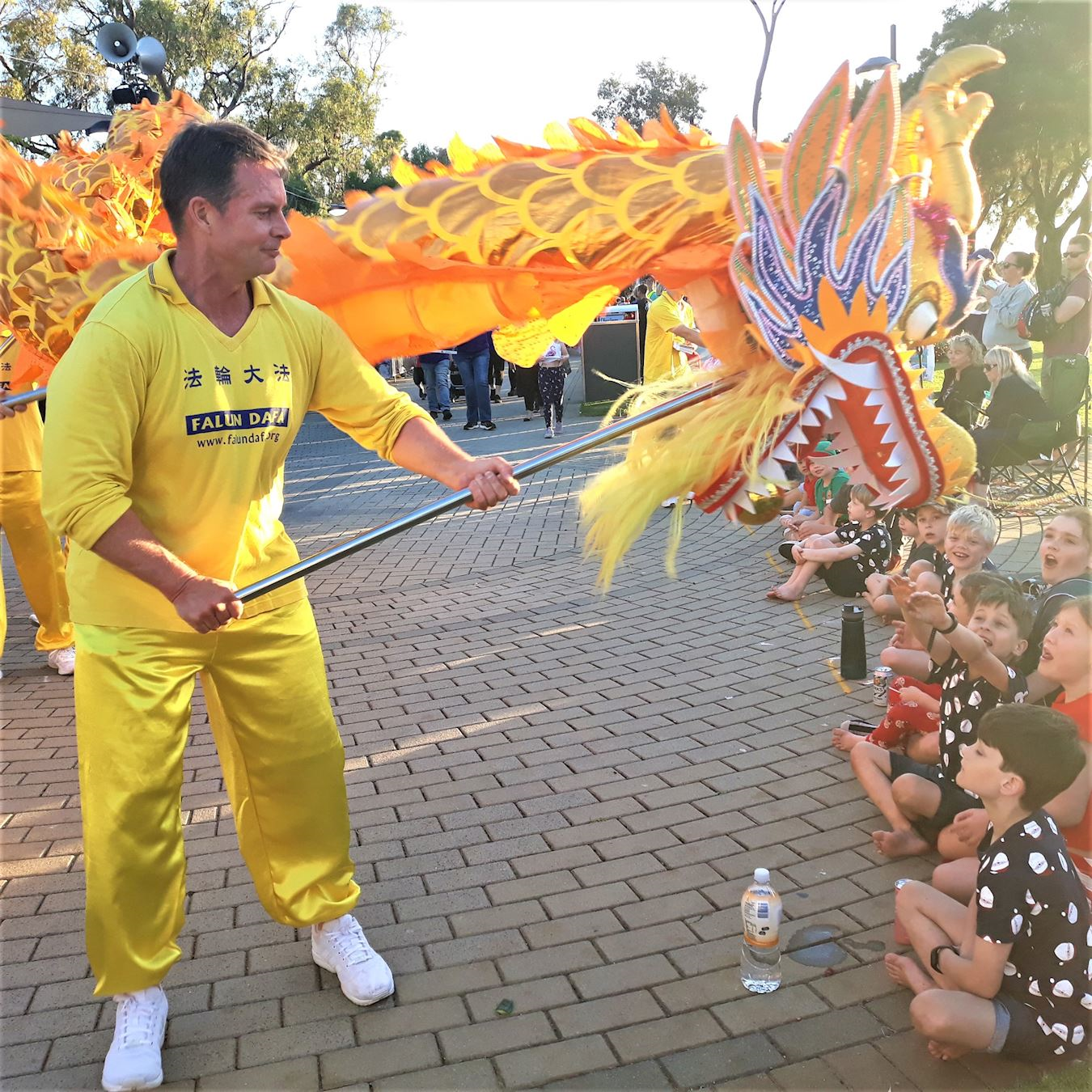 她说:“人们看到我们的游行队伍都很开心。我们一走过来,人们就冲我们笑,为我们鼓掌,大声祝我们圣诞快乐,每个人都喜欢我们。孩子们尤其喜欢我们舞的龙,他们一见到金龙就高兴地尖叫。当我们走到最后的时候,有一位女士走过来,我向她挥手微笑,她说你们绝对是所有团队中最好的。我说非常感谢你。”
